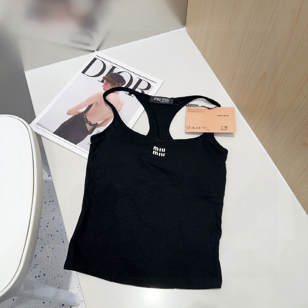 CAMISOLE 617514 IN BLACK COTTON RIBBED KNIT