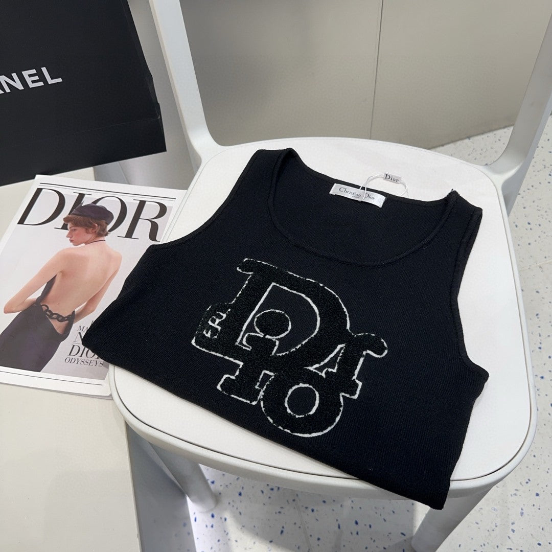 CAMISOLE 619300 IN BLACK COTTON RIBBED KNIT TEXTURED LOGO