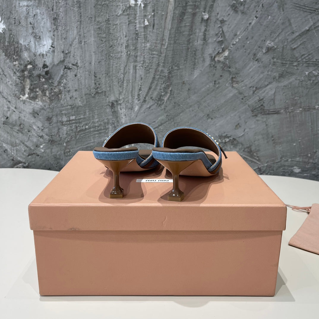 CARAMEL HIGH HEEL WITH BLUE STRAPS AND CARAMEL BELT