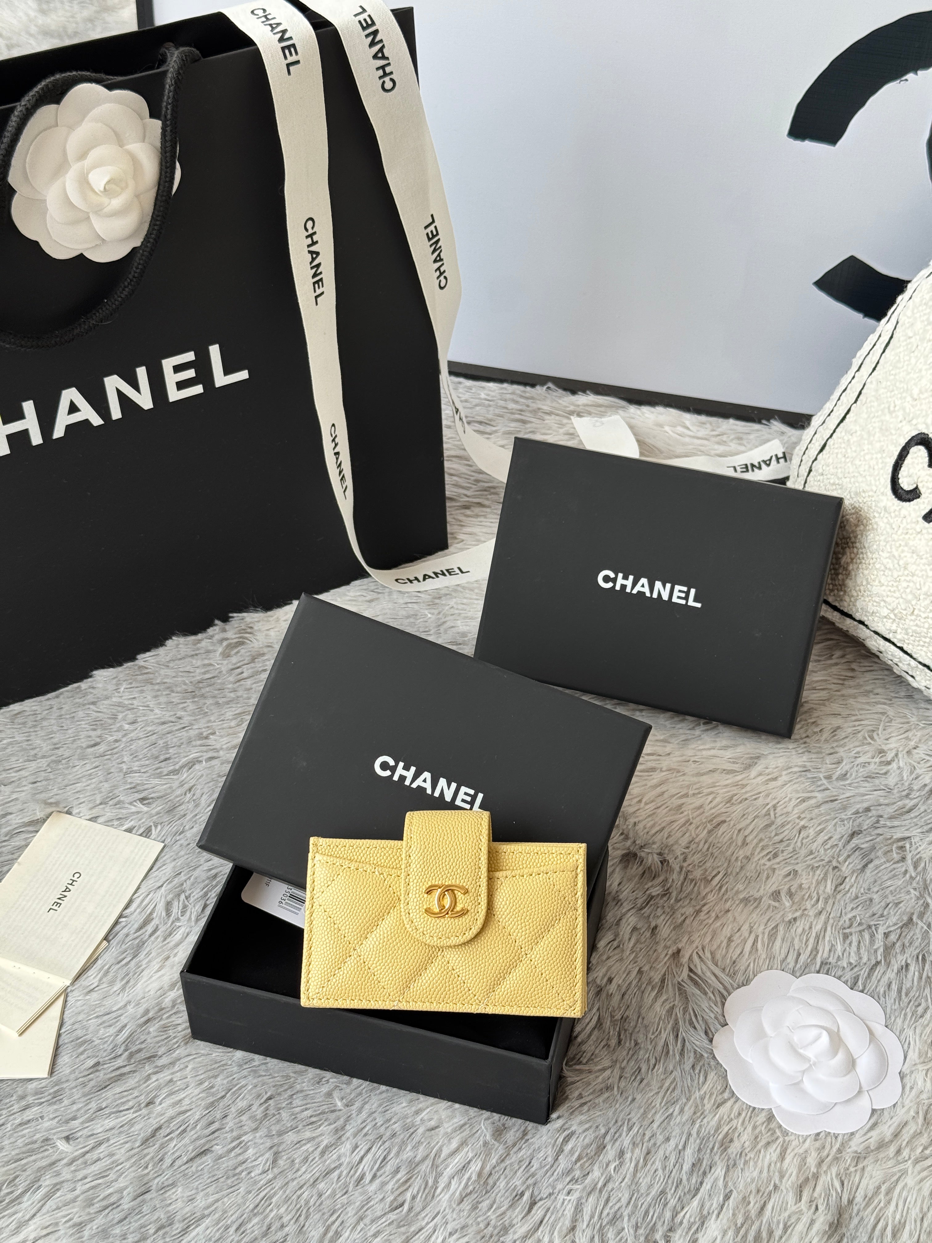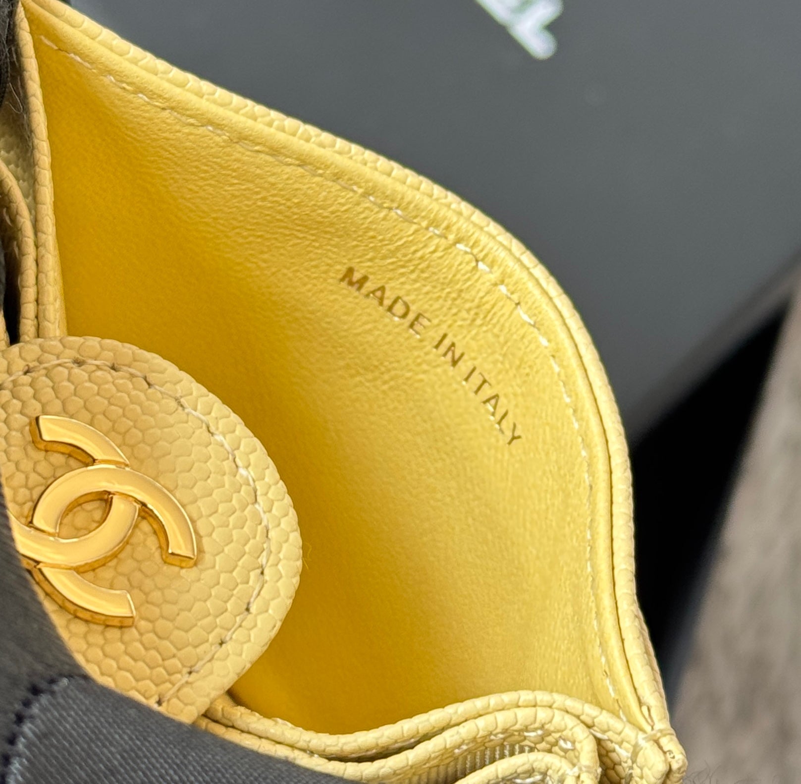 CARD HOLDER 10 CIRCLE CLASP IN YELLOW CAVIAR LEATHER GOLD-TONE METALLIC