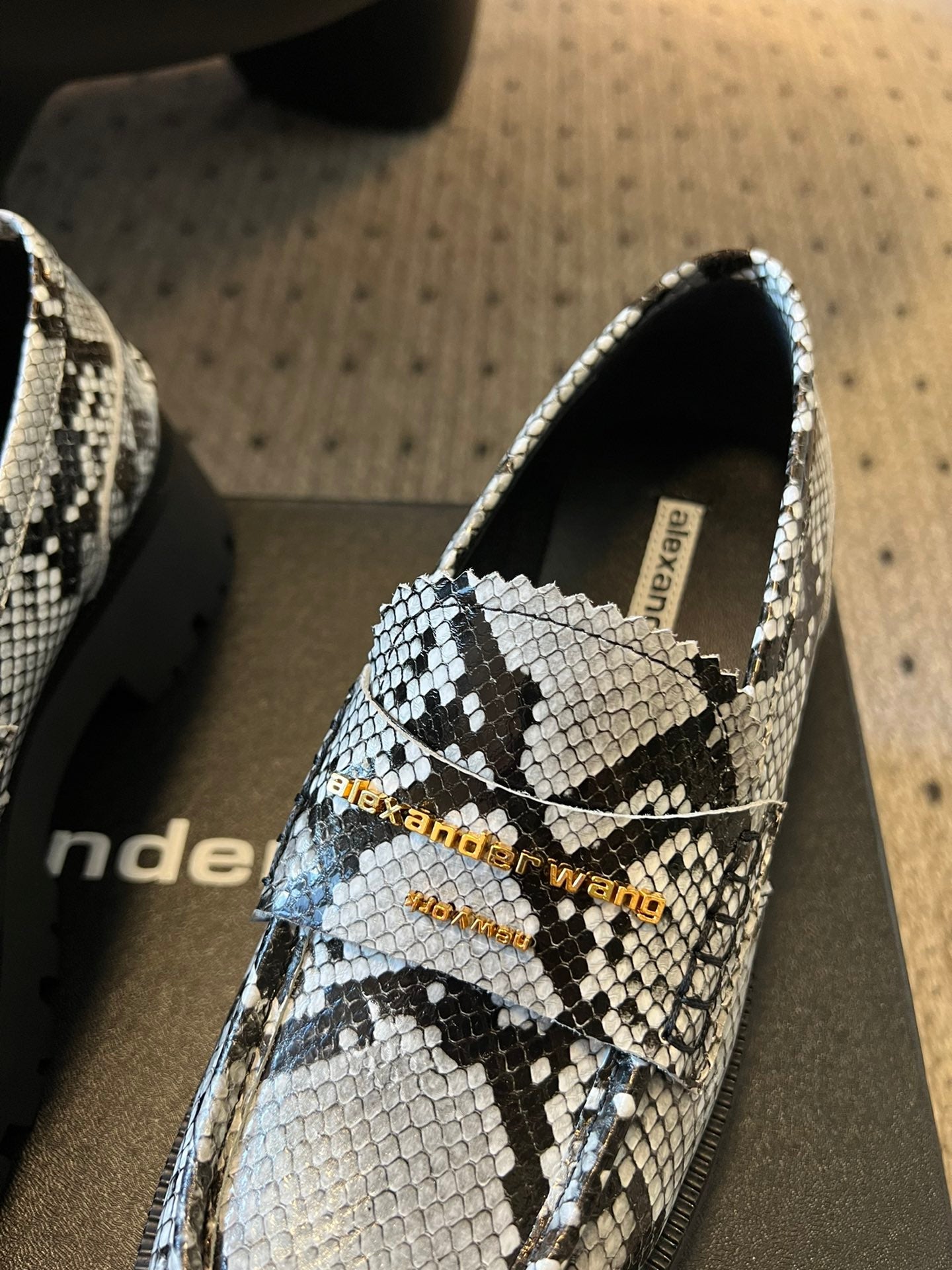 CARTER MID-HEEL 5 CM LUG LOAFER IN WHITE MIX BLACK GRAINED LAMBSKIN