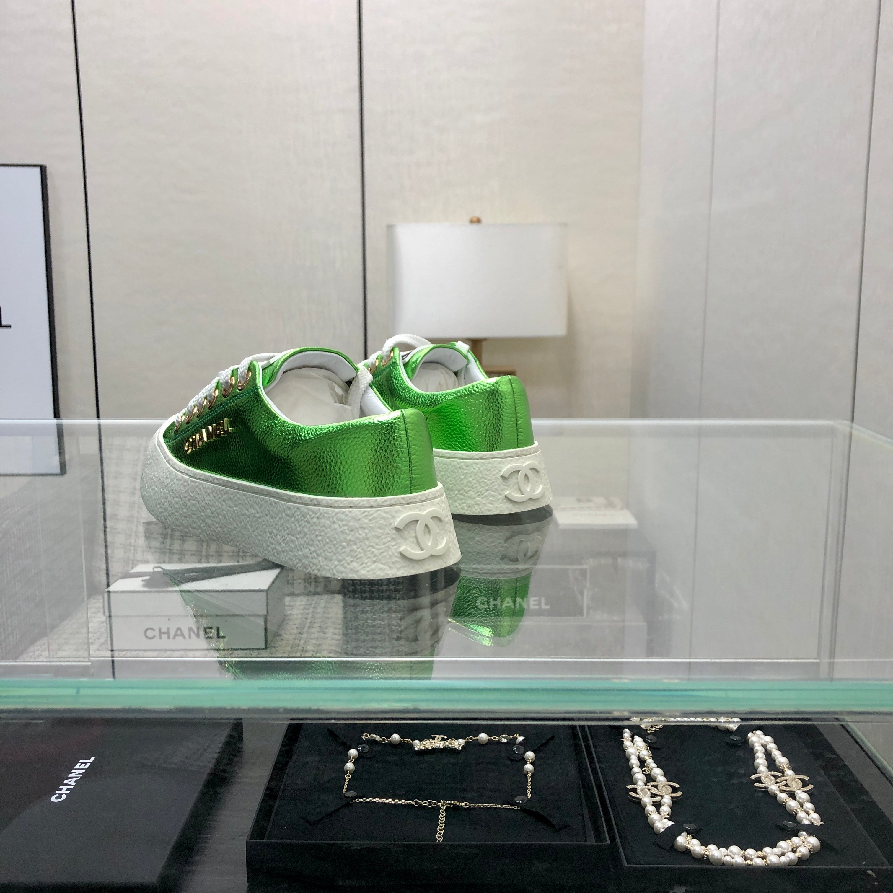 CASUAL SNEAKER IN EMERALD GREEN METALLIC LAMBSKIN WITH GOLD LOGO