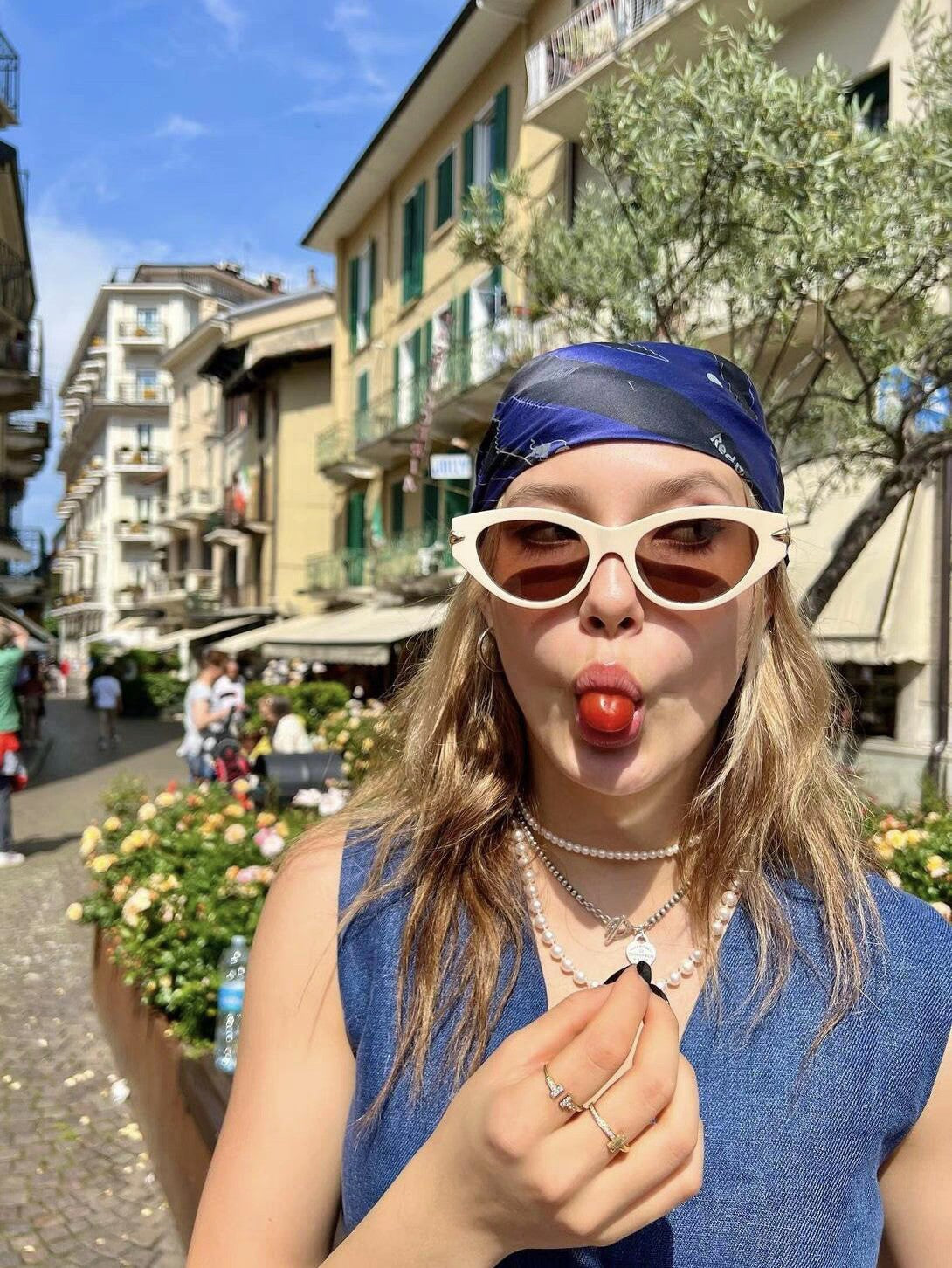 CAT EYE SUNGLASSES 576884 IN IVORY AND GOLD ACETATE