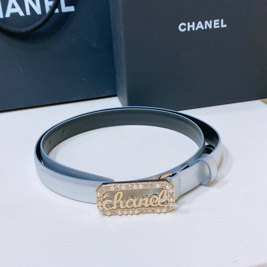 CC 20MM BELT RECTANGLE BUCKLE IN SILVER CALFSKIN GOLD HARDWARE