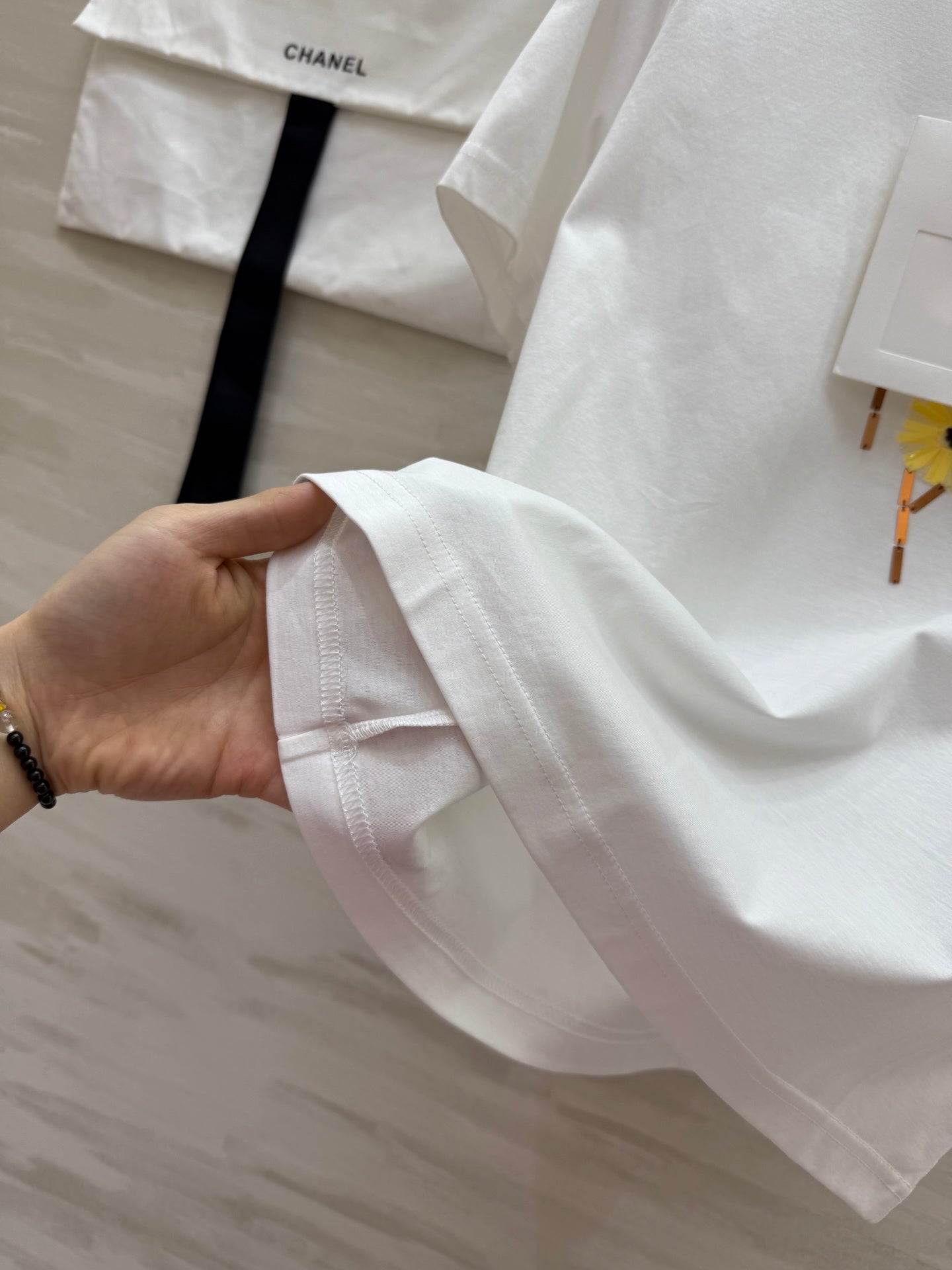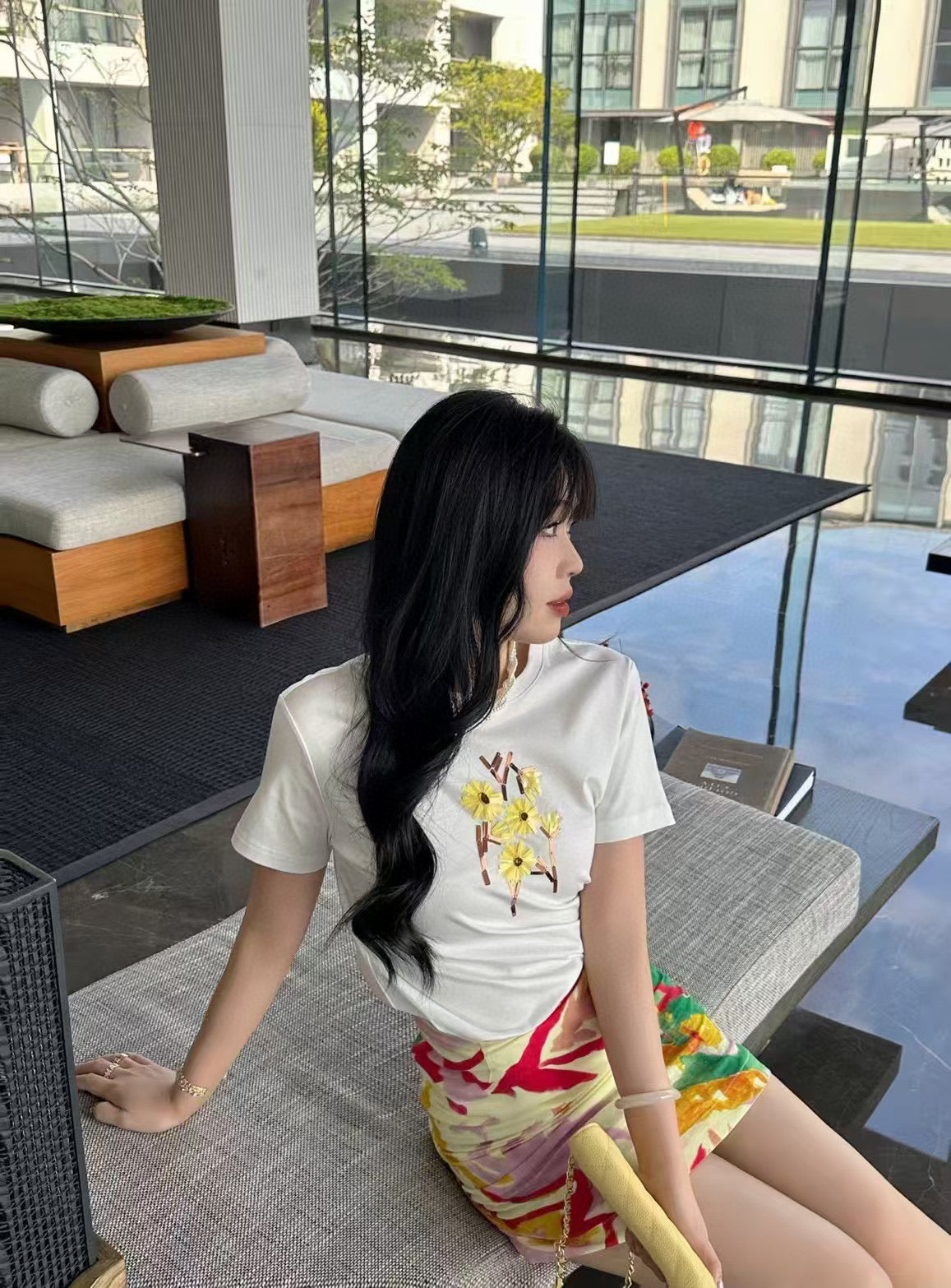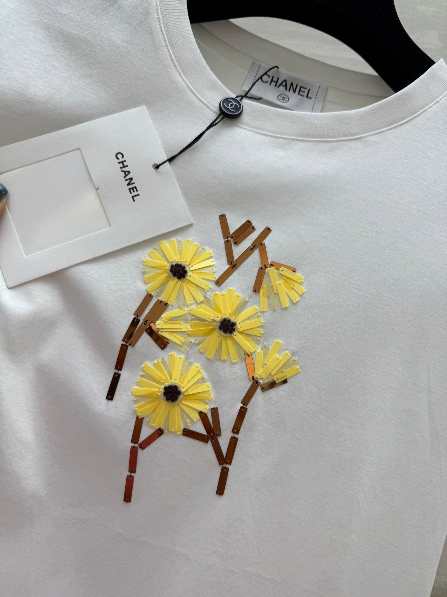 CC 25 Beaded Embroidered Daisy T-shirt White Cotton