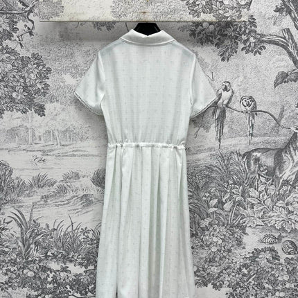 CC 25 Logo Plaid Short-sleeved Dress White Polyester Fiber