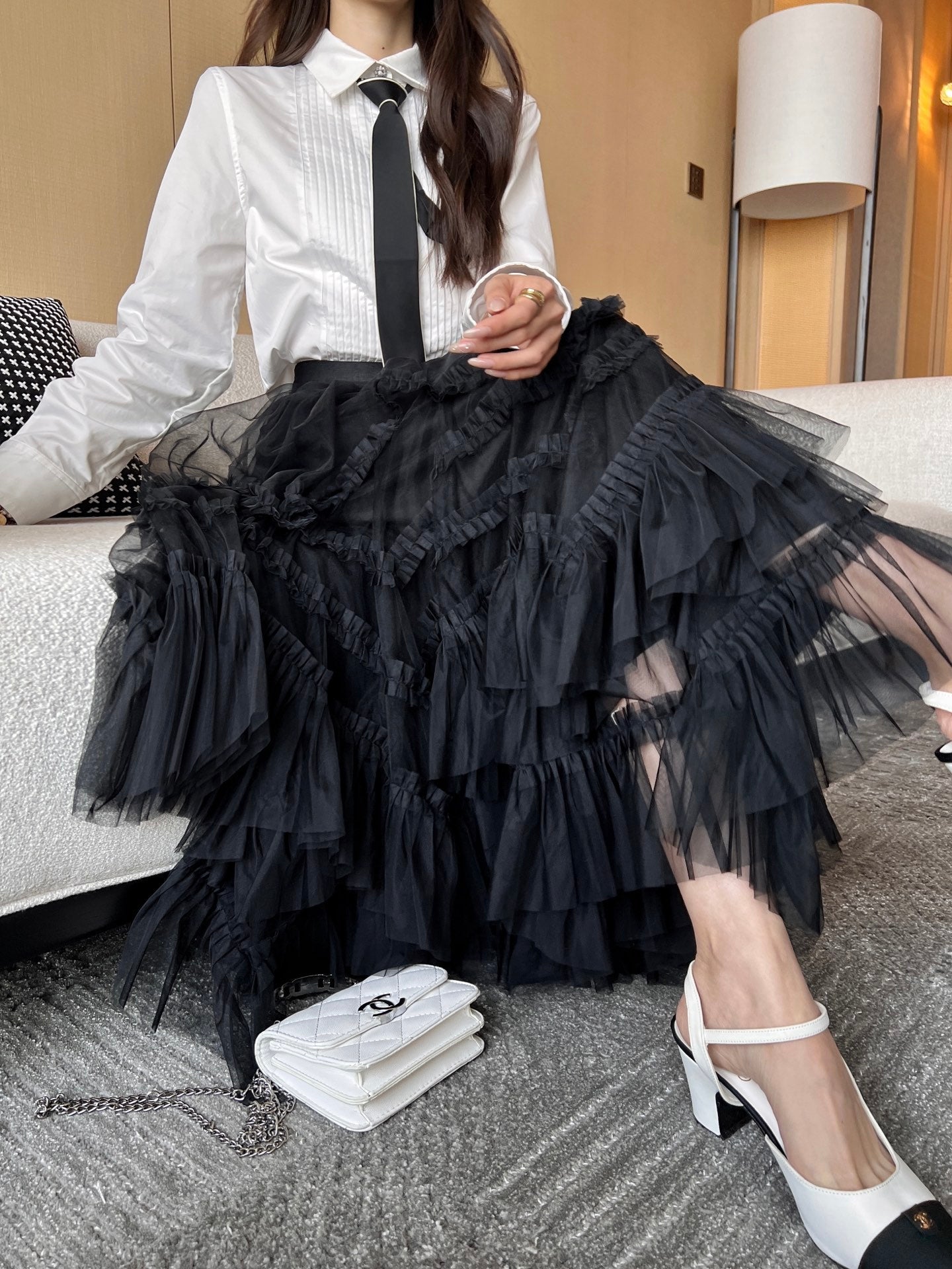 CC 25 Mesh Long Skirt Black Polyester Fiber