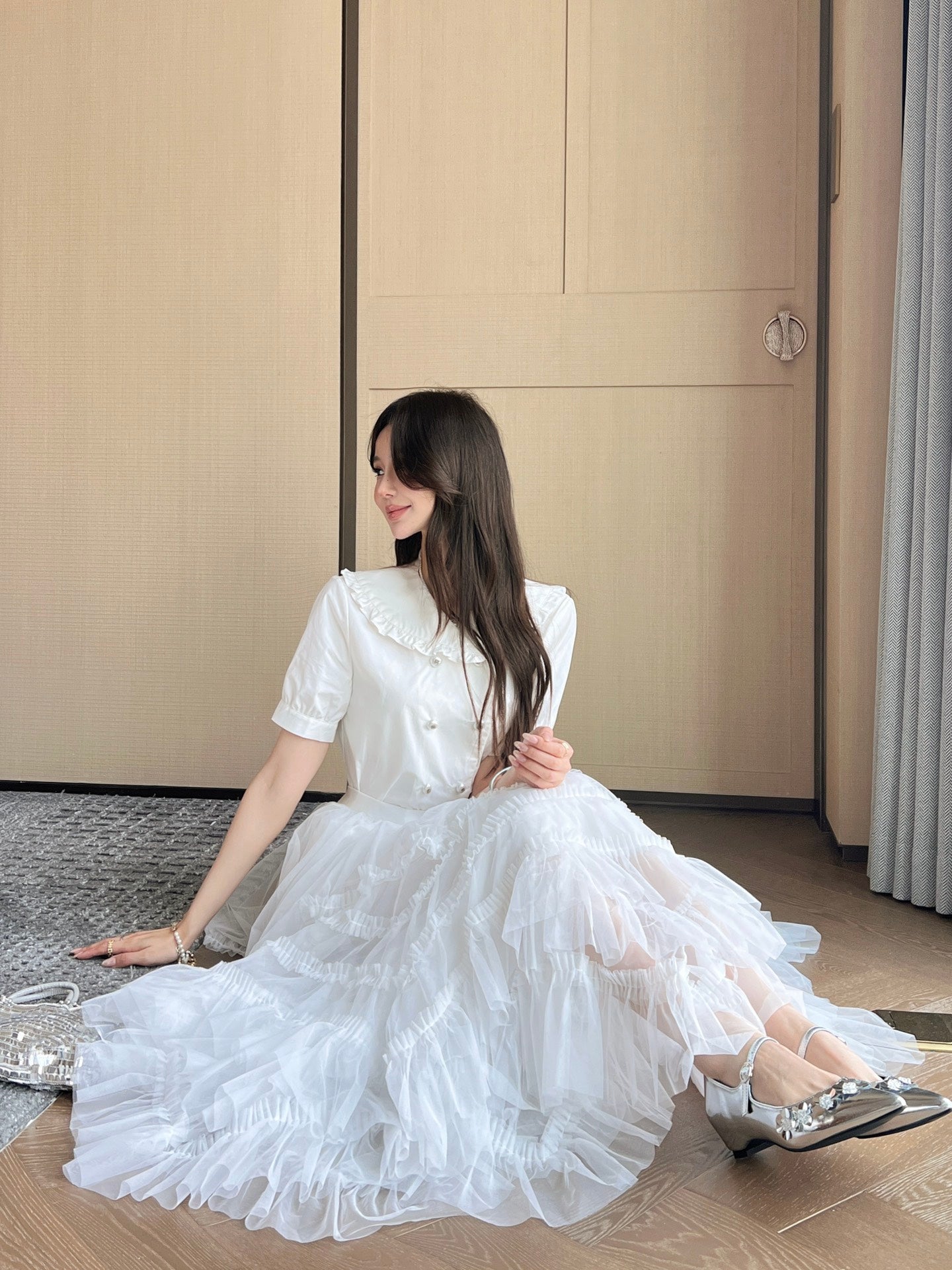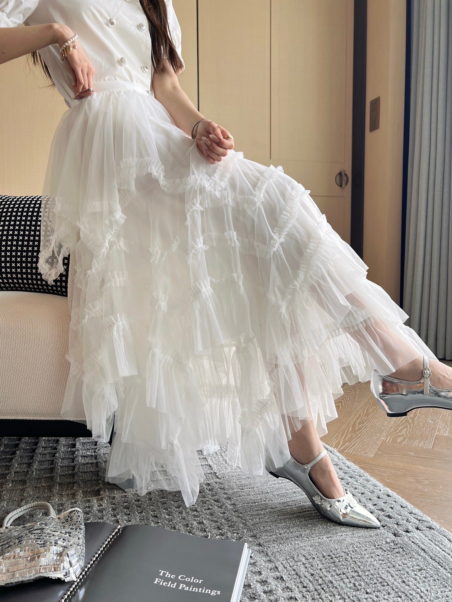 CC 25 Mesh Long Skirt White Polyester Fiber