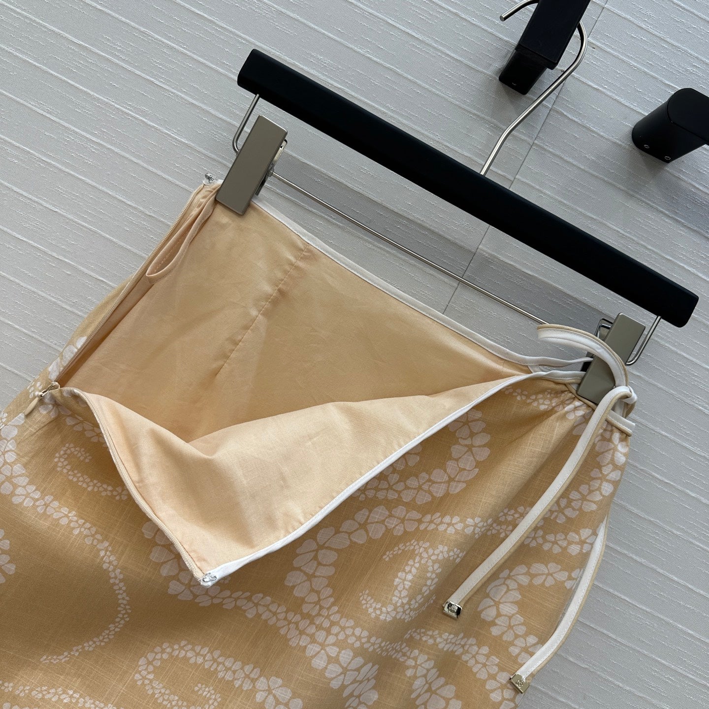 CC 25 Wave Pattern Long Skirt Yellow Silk Cotton