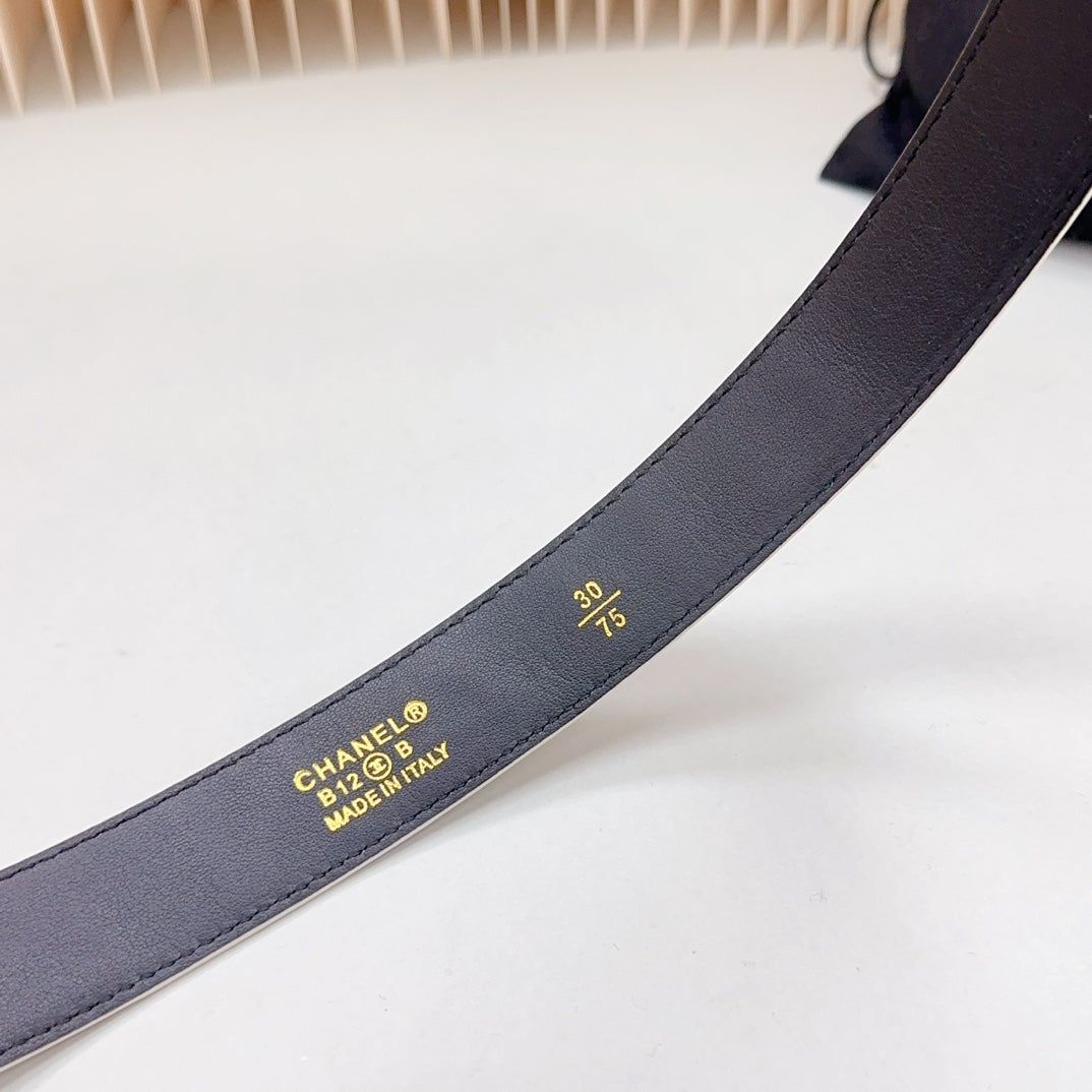 CC 30 MM BELT SQUARE BUCKLE IN WHITE EMBROIDERED CALFSKIN GOLD HARDWARE ATTACH RHINSTONES