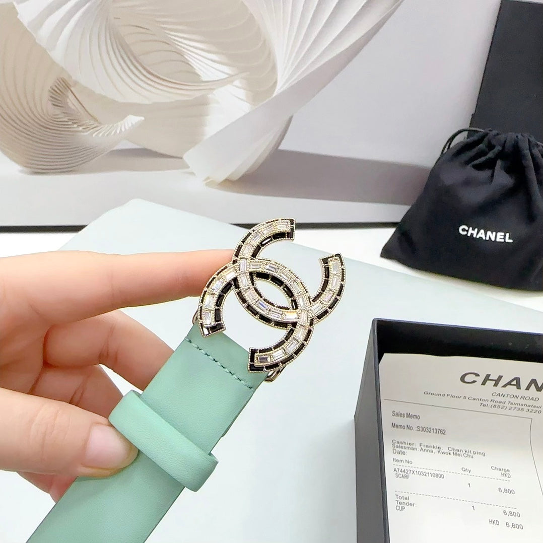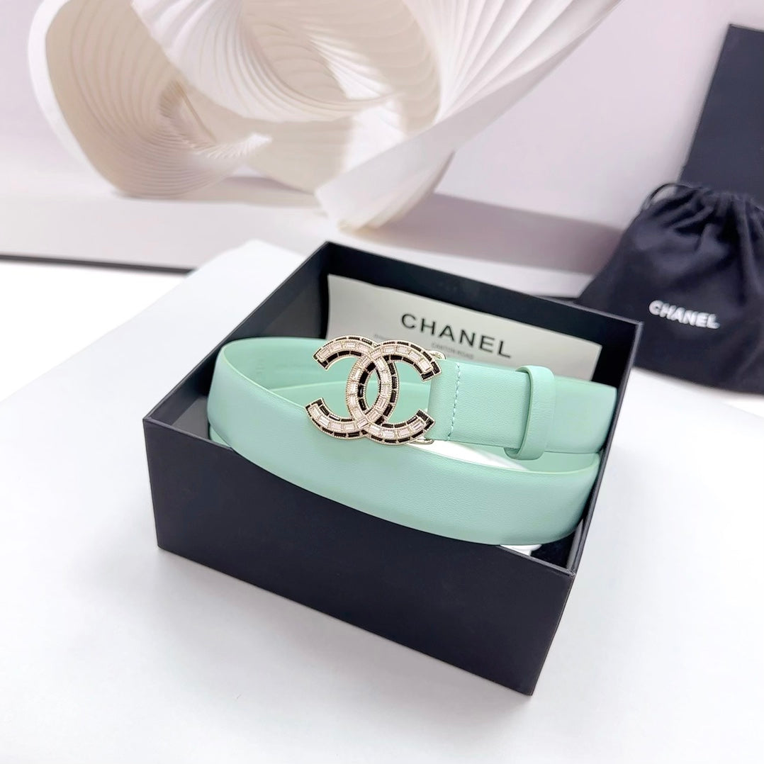 CC 30MM BELT IN GREEN MINT CALFSKIN METAL HARDWARE