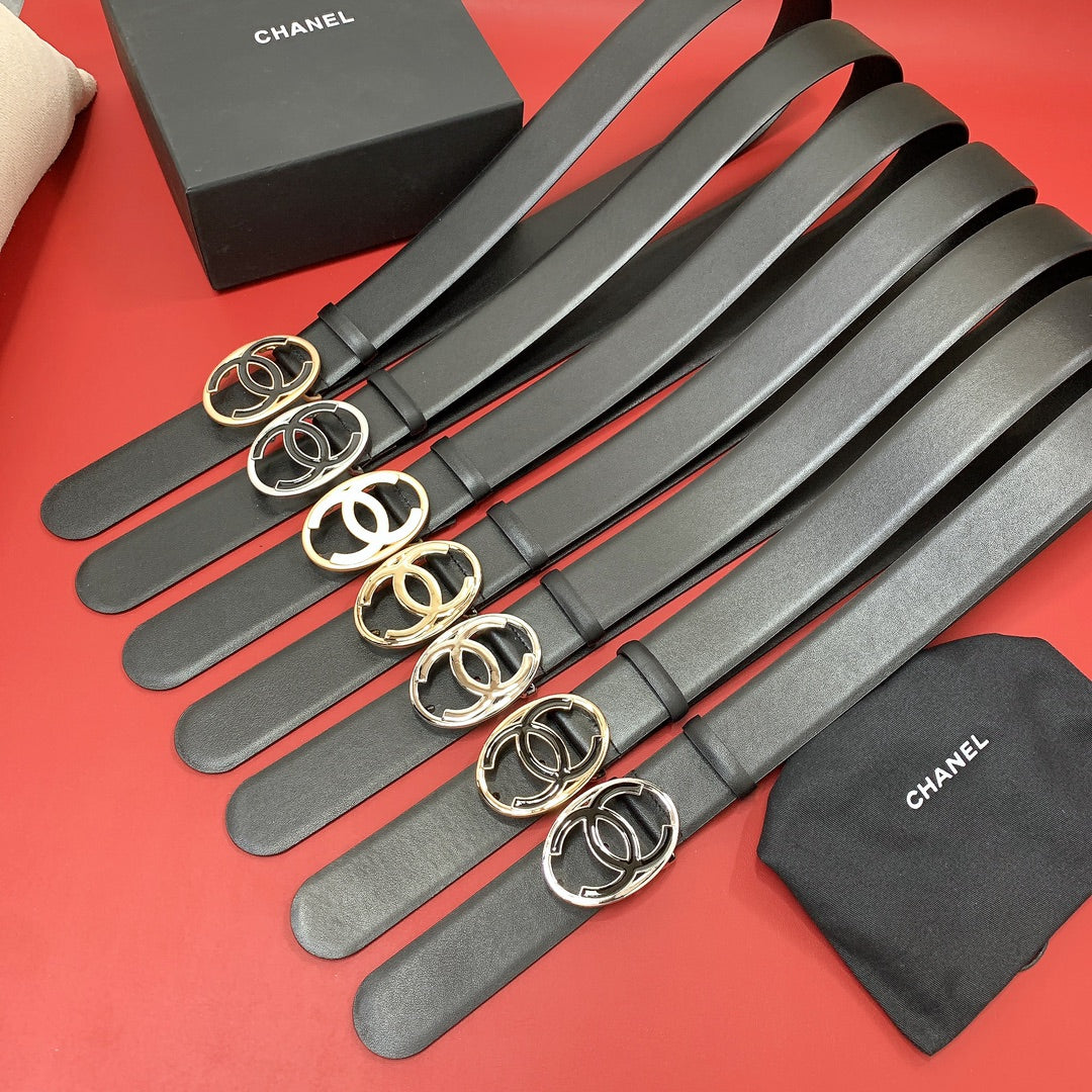 CC 40 MM CIRCLE BUCKLE BELT IN BLACK CALFSKIN WITH GOLD MIX BLACK HARDWARE