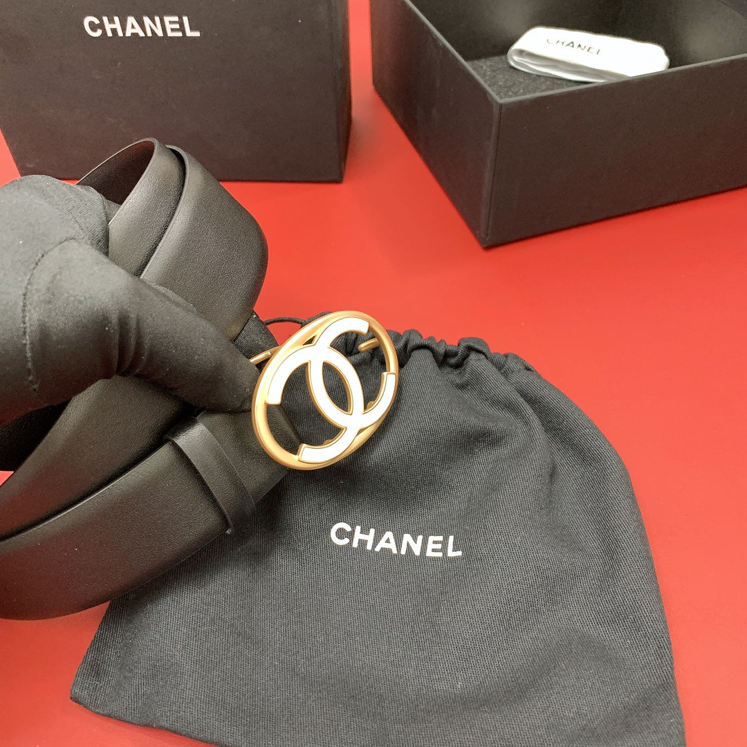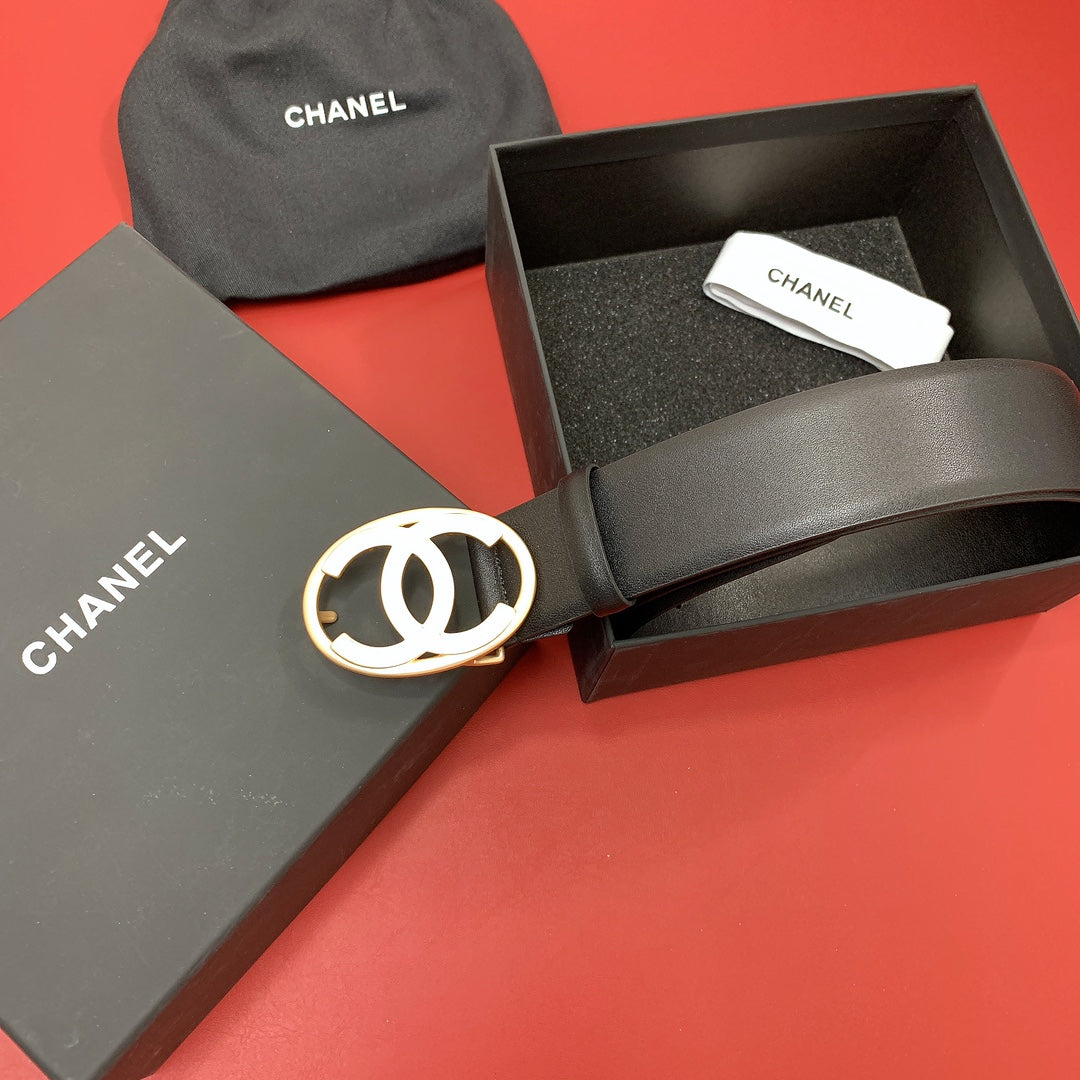 CC 40 MM CIRCLE BUCKLE BELT IN BLACK CALFSKIN WITH GOLD MIX WHITE HARDWARE
