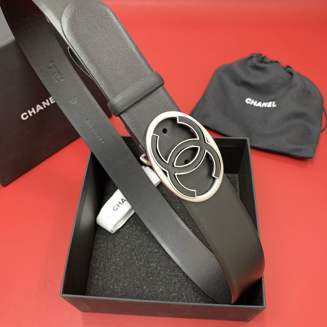 CC 40 MM CIRCLE BUCKLE BELT IN BLACK CALFSKIN WITH SILVER MIX BLACK HARDWARE