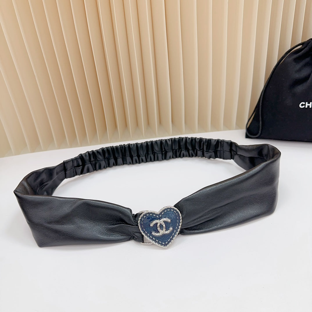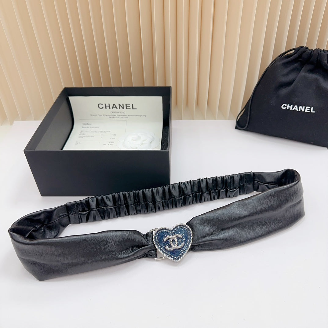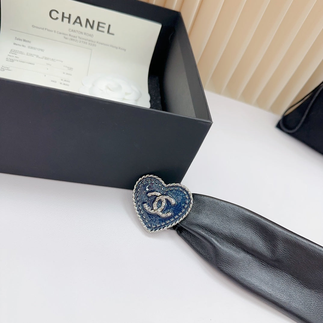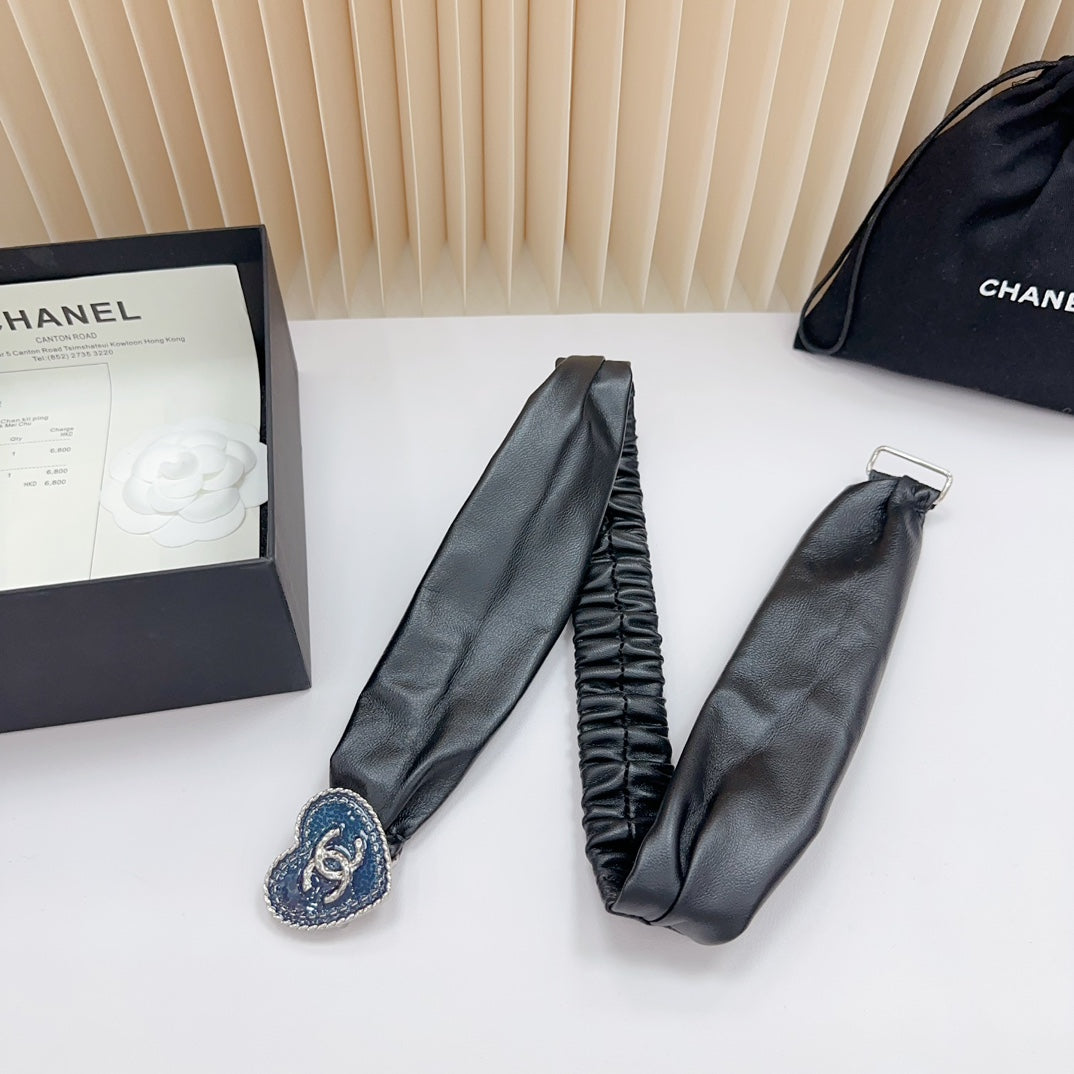 CC 50 MM ELASTIC BELT IN BLACK CALFSKIN SILVER HEART HARDWARE
