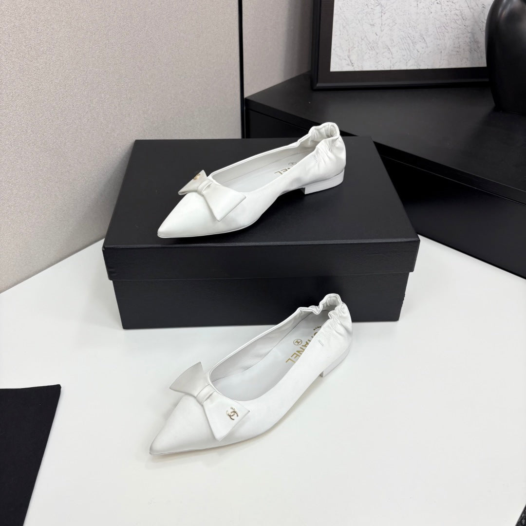 CC BALLET FLATS 25S IN WHITE SATIN WITH BOW