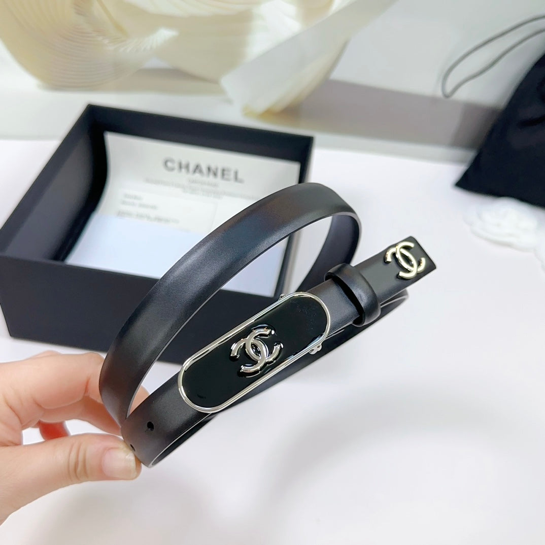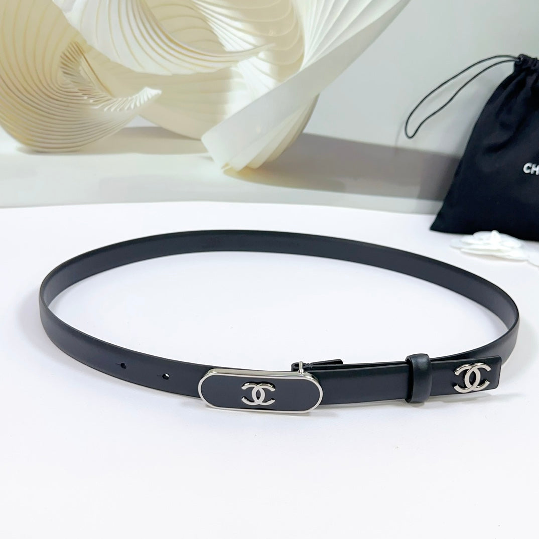 CC BELT 20 MM IN BLACK CALFSKIN WITH SILVER MIX BLACK METAL BUCKLE