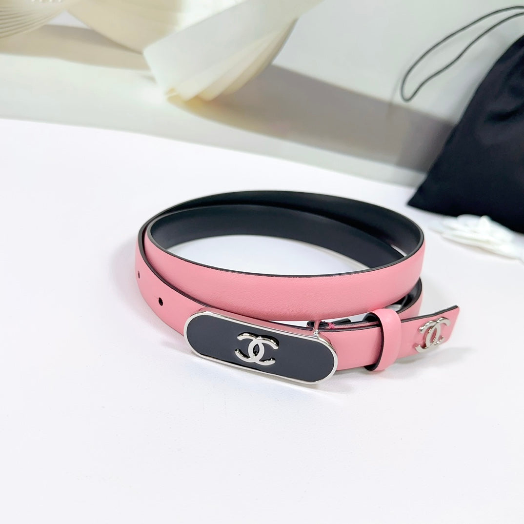CC BELT 20 MM IN BRIGHT PINK CALFSKIN WITH SILVER MIX BLACK METAL BUCKLE