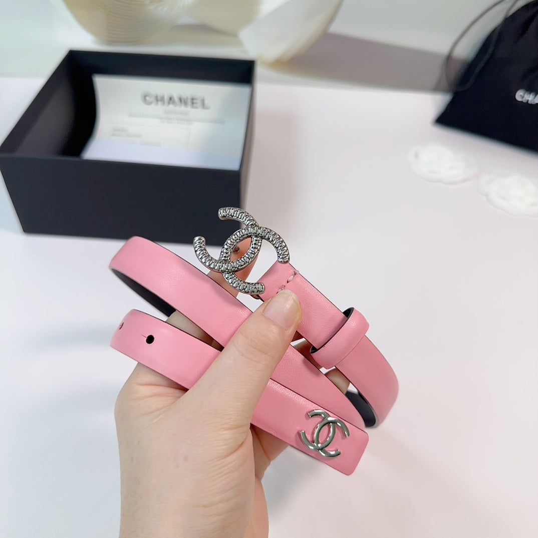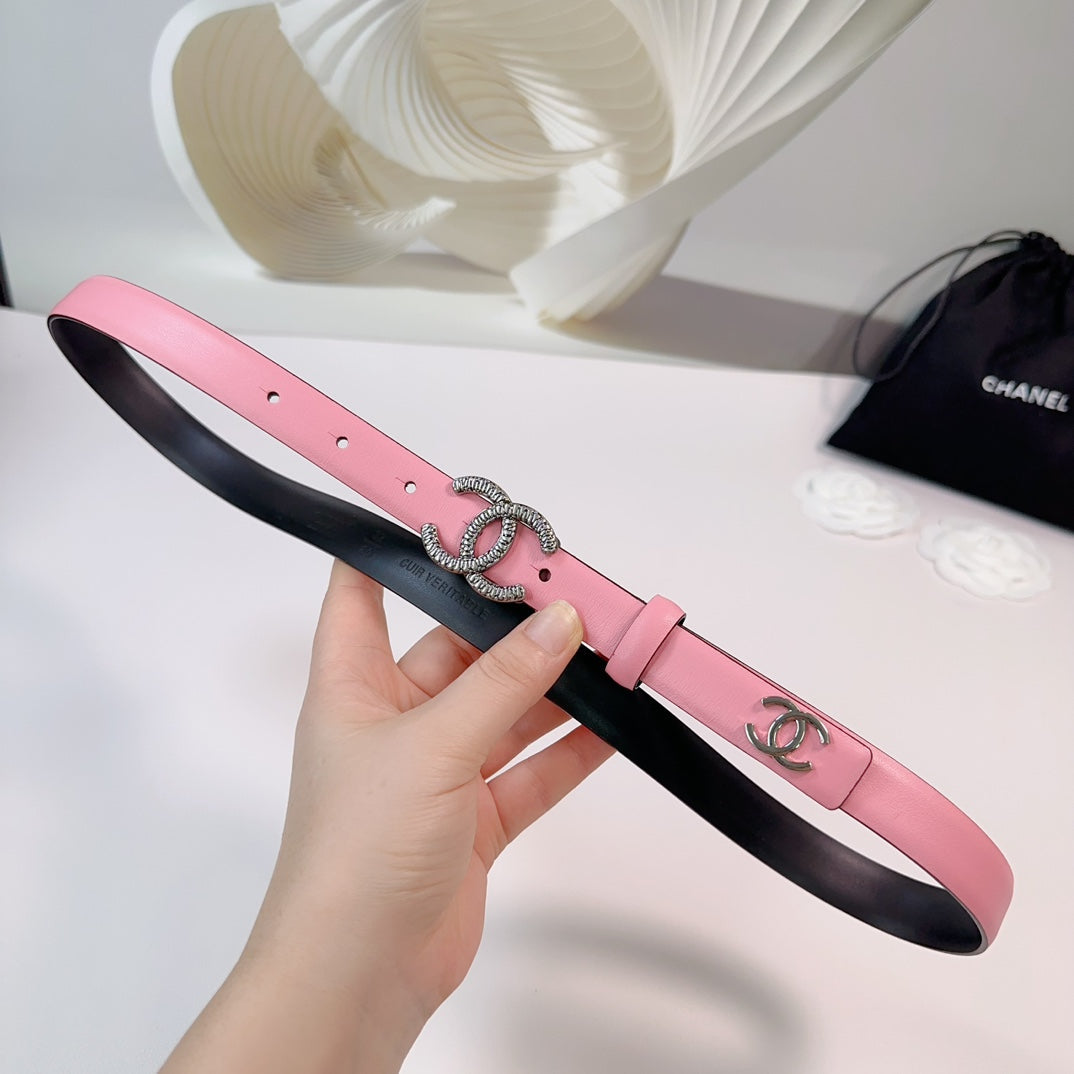 CC BELT 20 MM IN FLAMINGO PINK CALFSKIN WITH SILVER HARDWARE