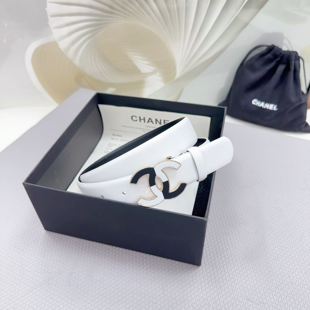 CC BELT 30 MM BLACK MIX WHITE CALFSKIN WITH METAL LOGO