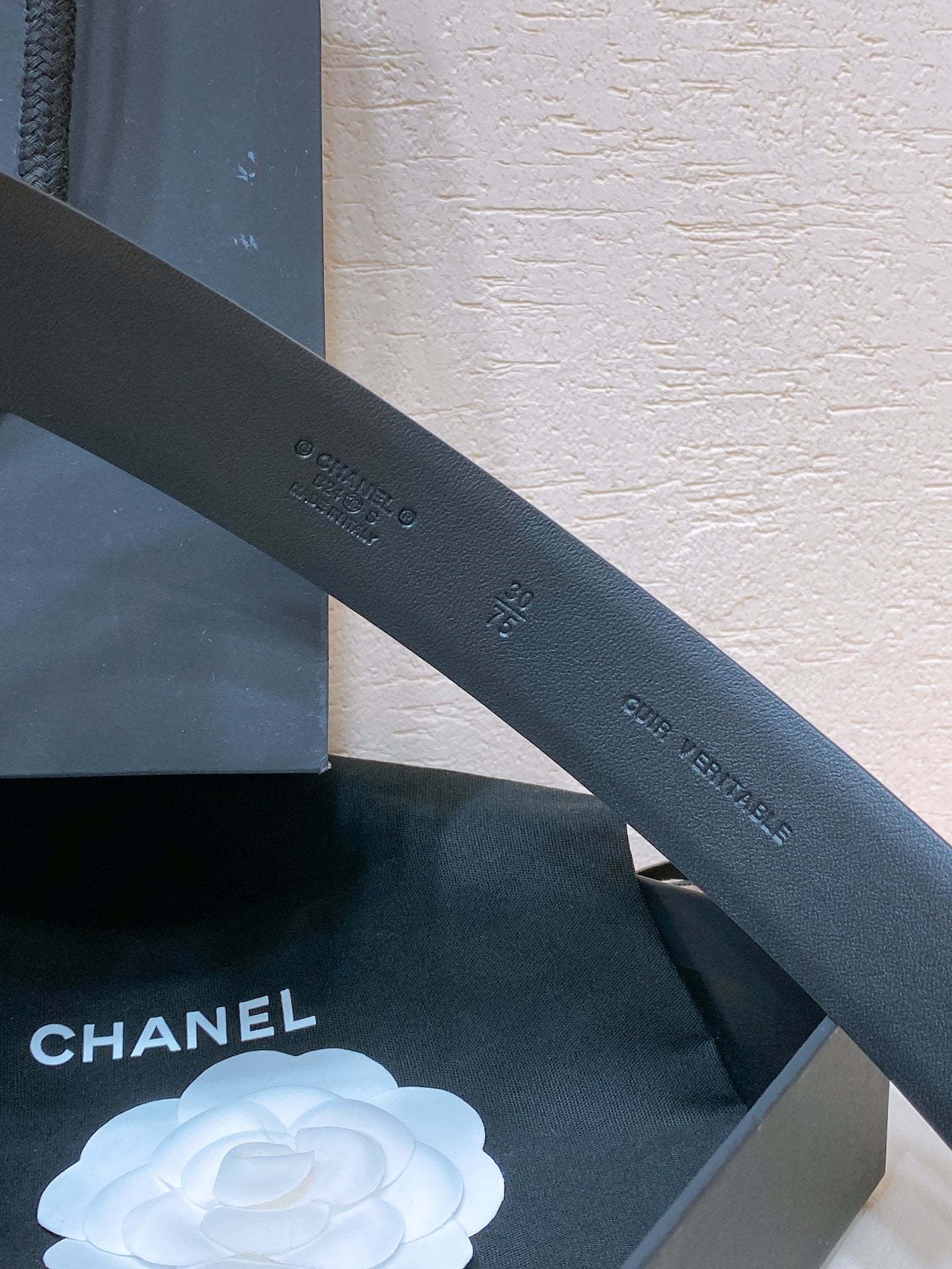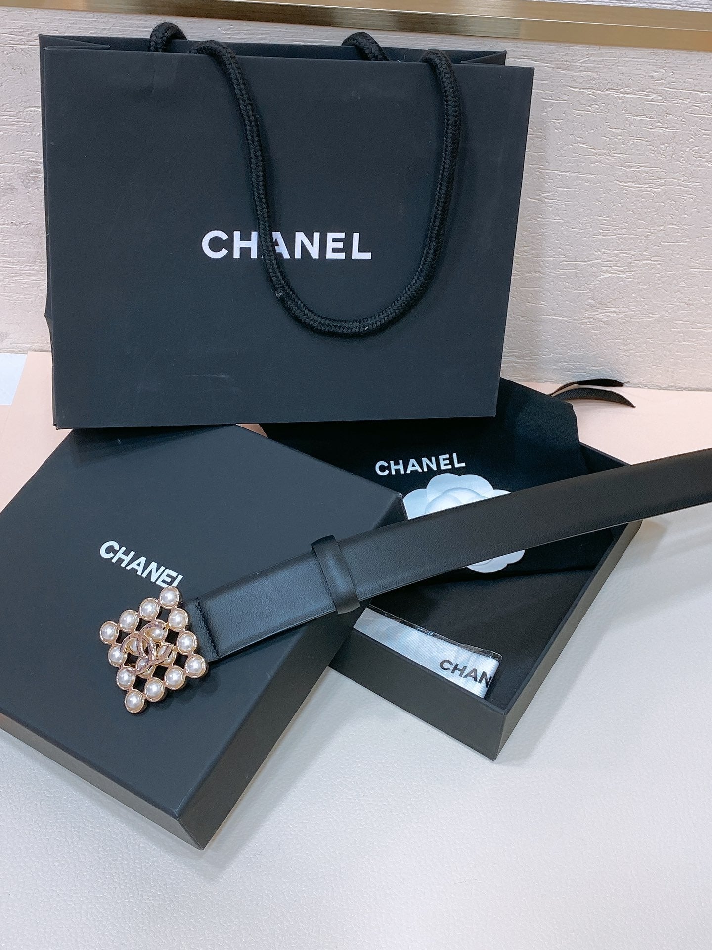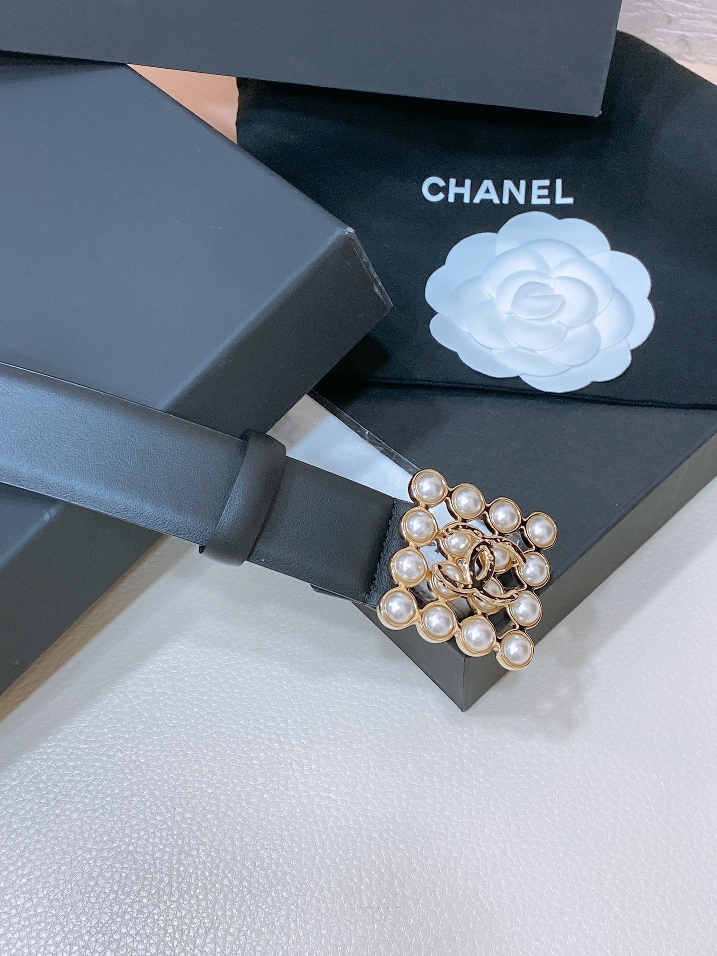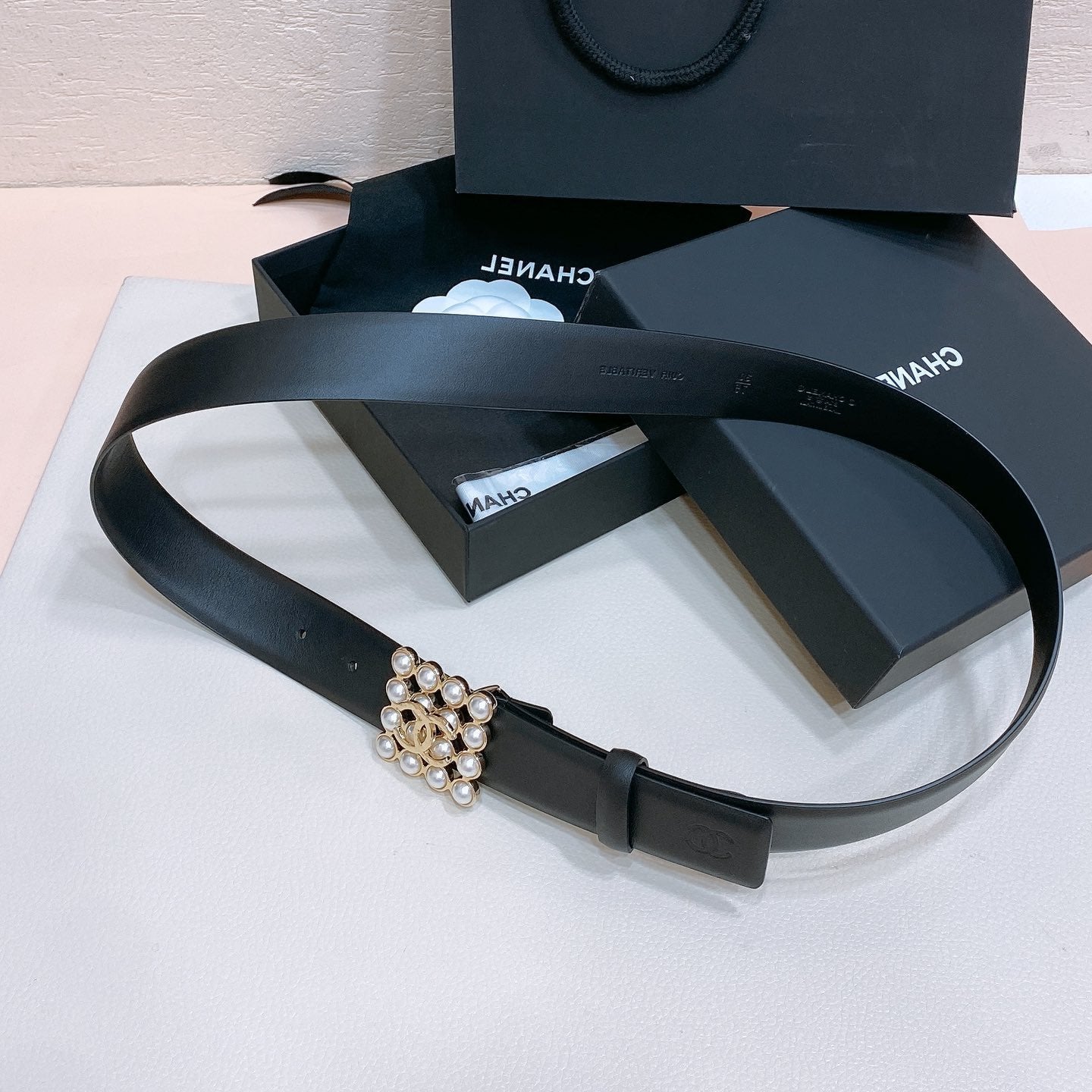 CC BELT 30 MM IN BLACK CALFSKIN GOLD HARDWARE ATTACH PEARLS