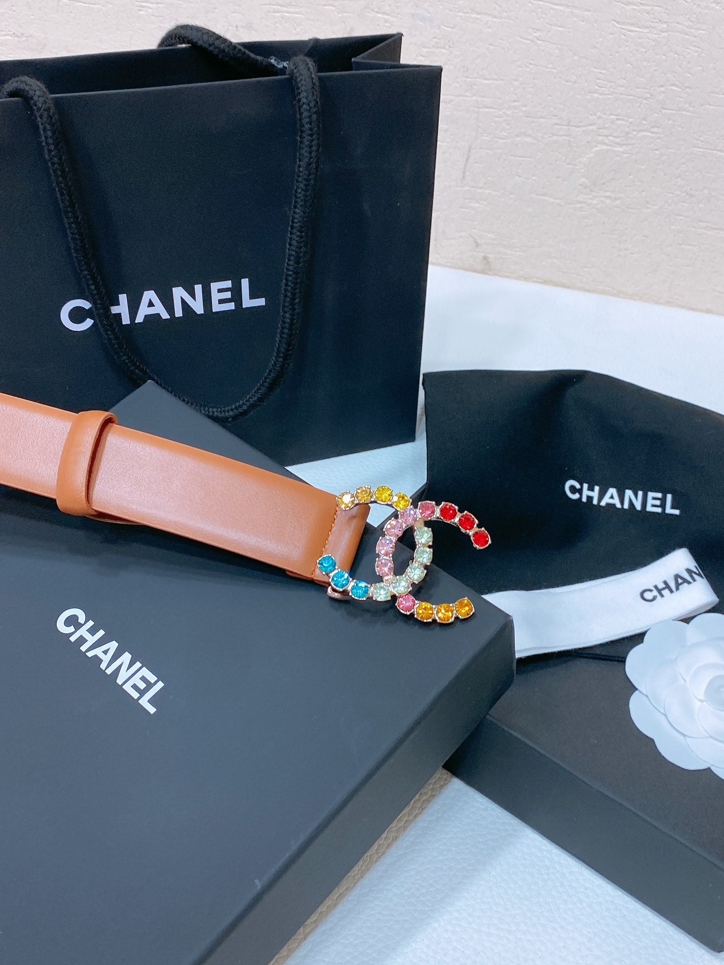 CC BELT 30 MM IN BRONZE BROWN CALFSKIN WITH COLORFUL RHINSTONES METAL LOGO