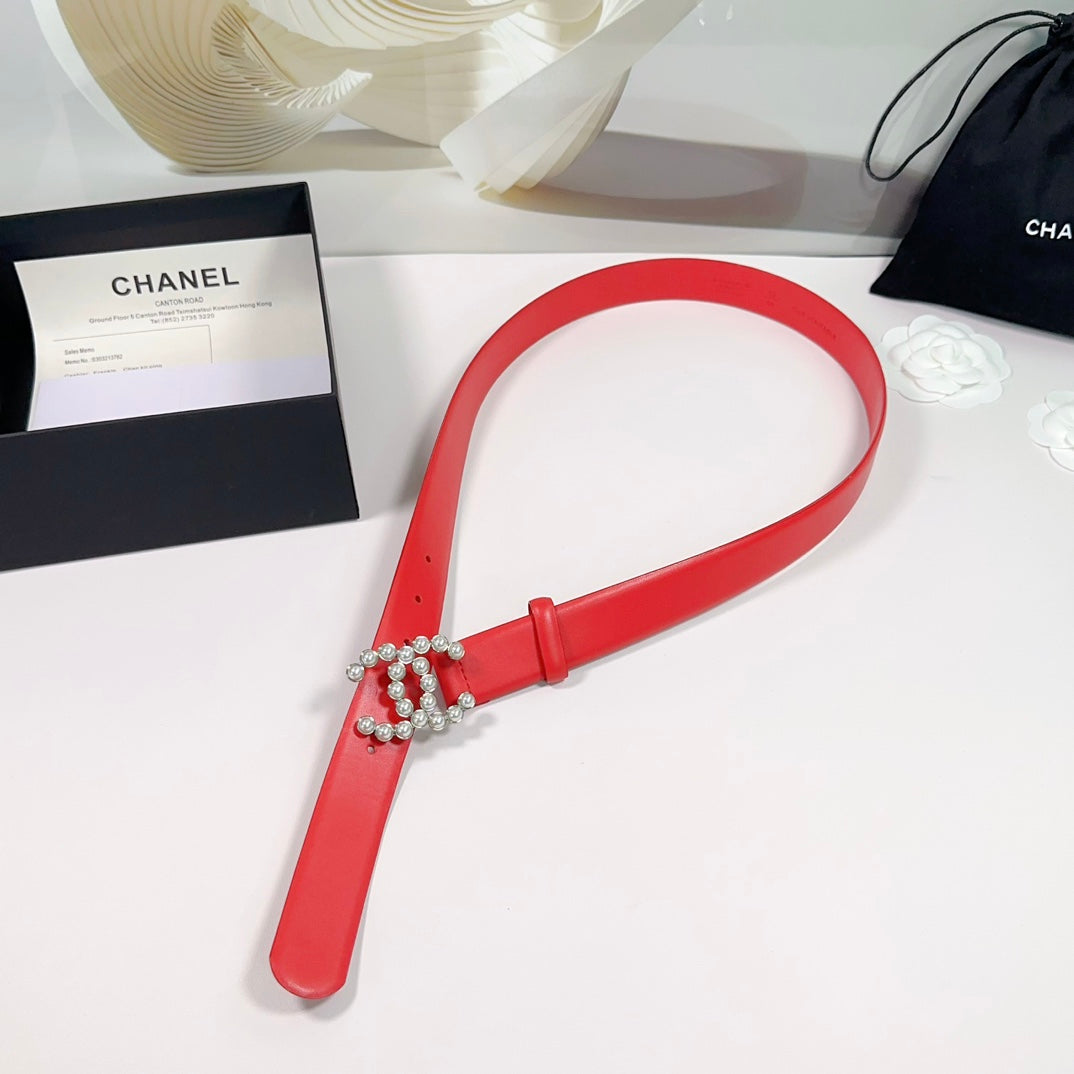CC BELT 30 MM IN CRIMSON RED SMOOTH CALFSKIN WITH SILVER HARDWARE ATTACH PEARL