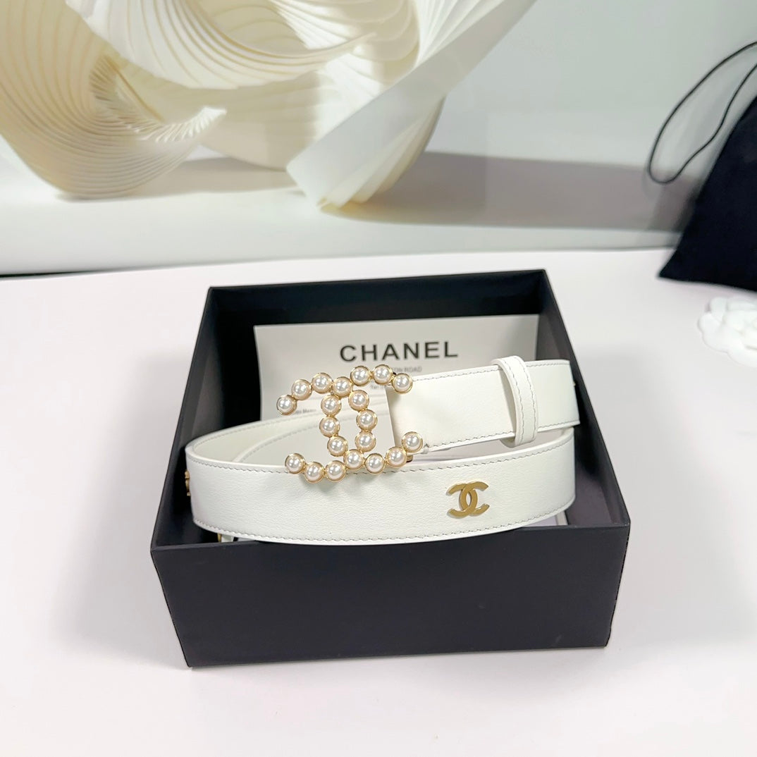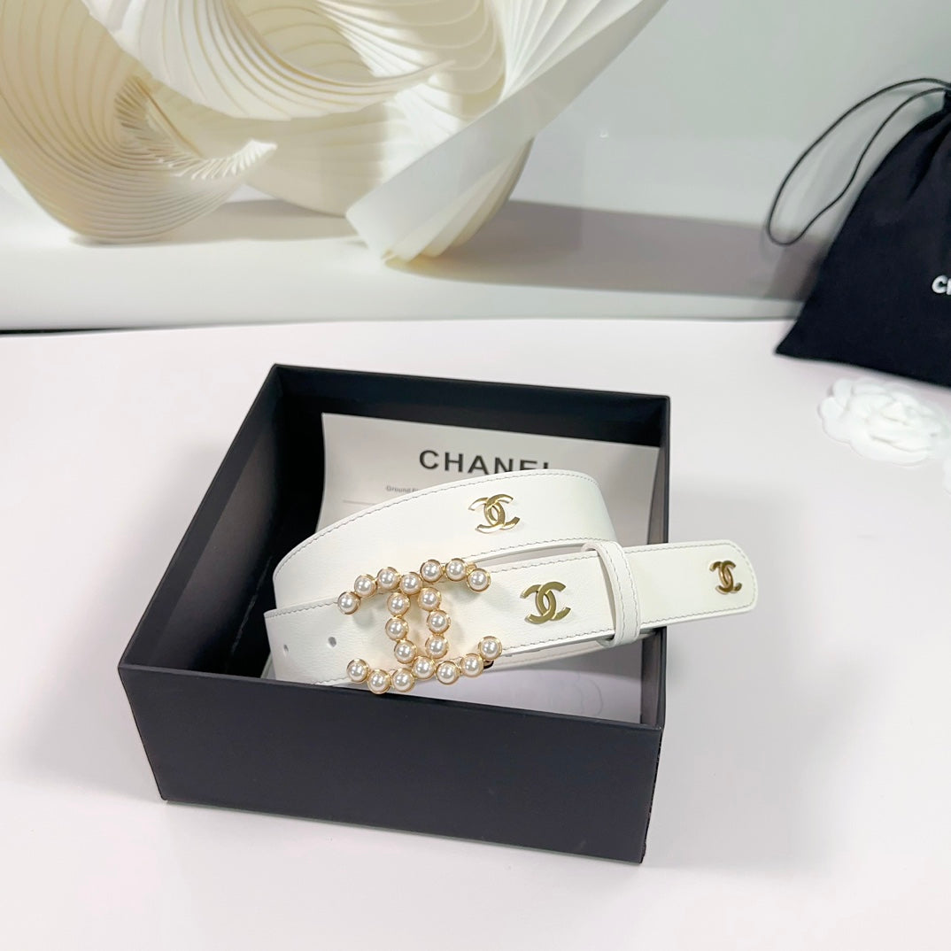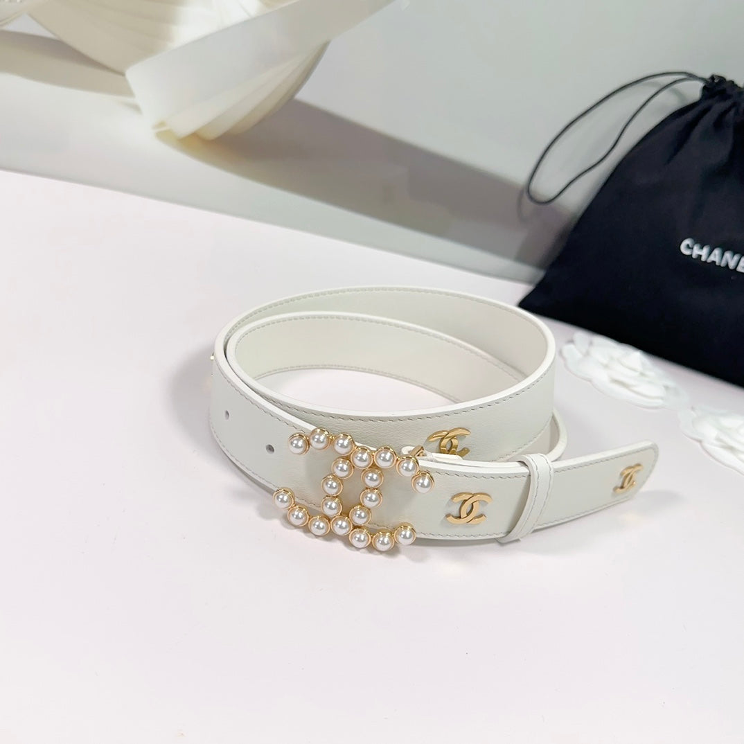 CC BELT 30 MM IN WHITE SMOOTH CALFSKIN WITH GOLD LOGO AND BUCKLE ATTACH PEARL