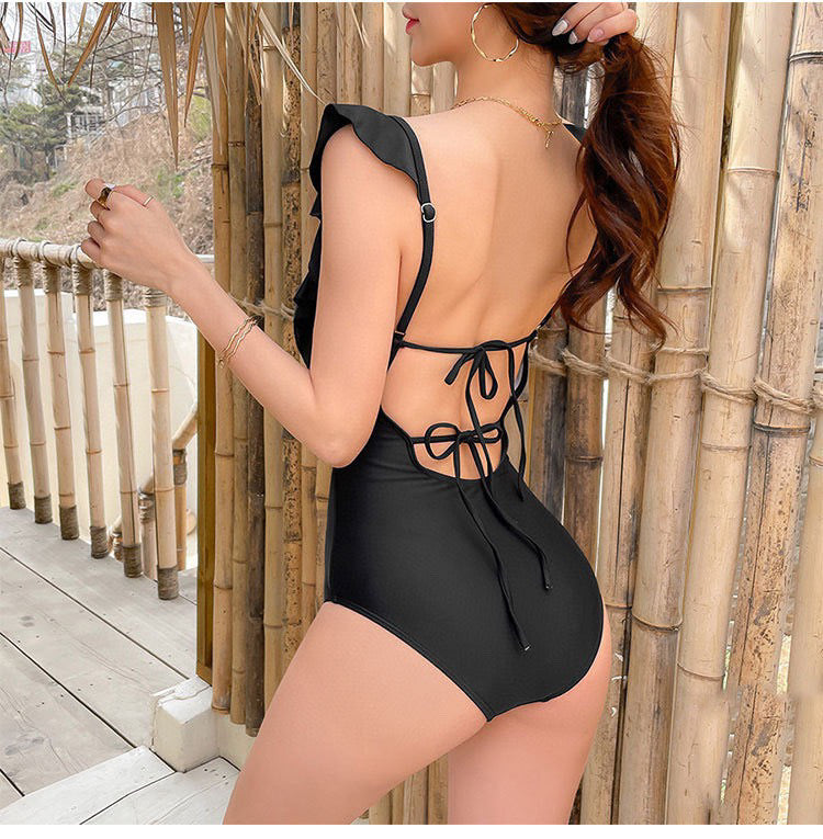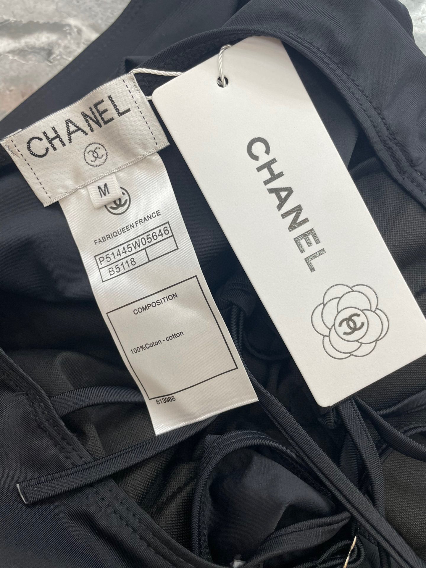 CC BIKINI SWIMSUIT SET IN BLACK ATTACHED WITH GOLD METAL LOGO 615196
