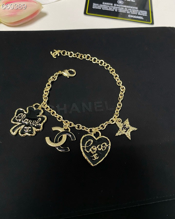 CC BRACELET IN GOLD PLATING CHAIN WITH MULTI CHARM