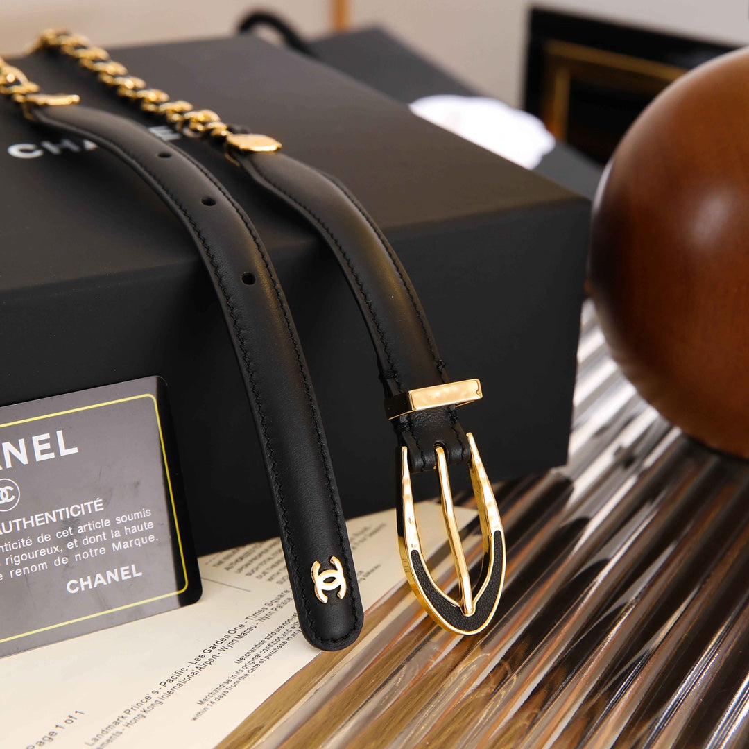 CC CHAIN BELT WITH GOLD HARDWARE AN BLACK CALFSKIN