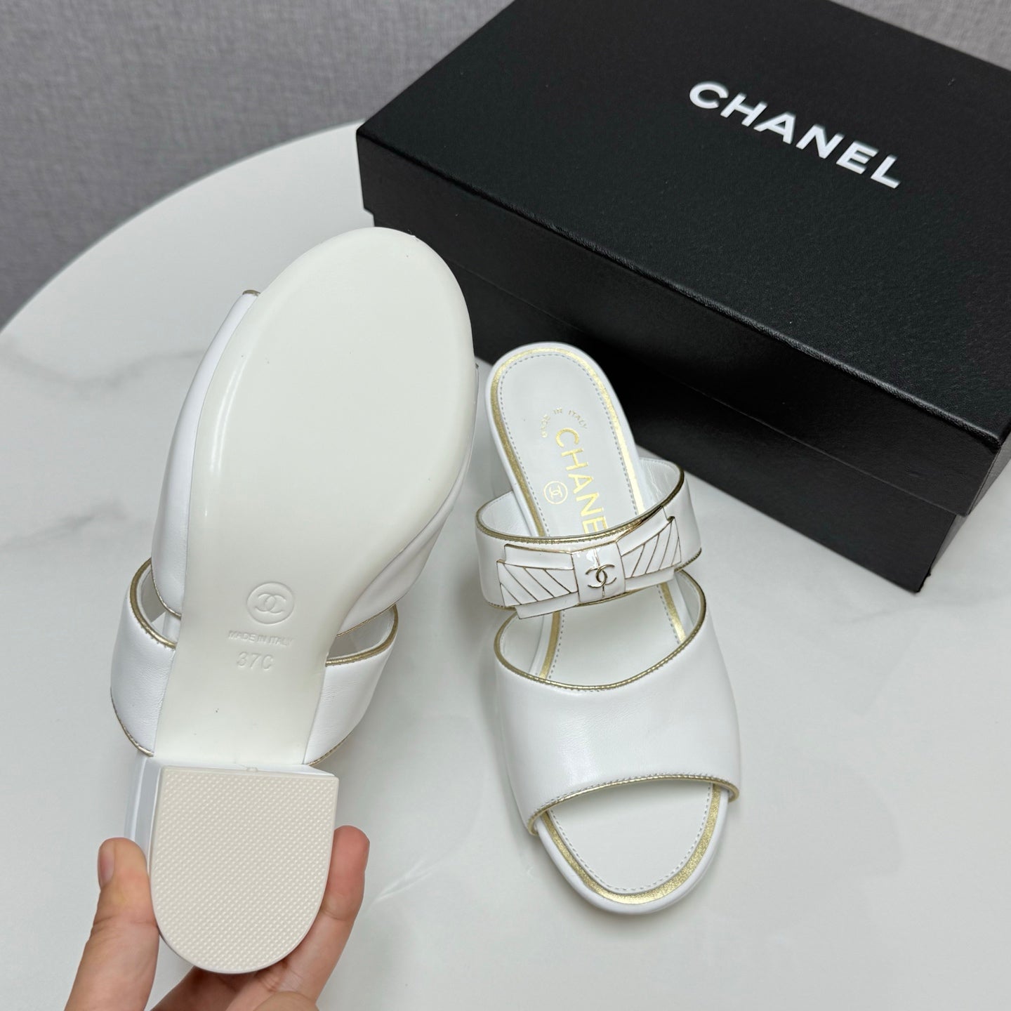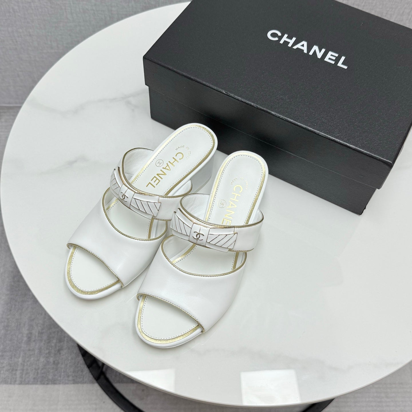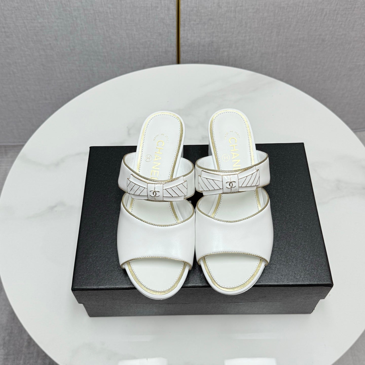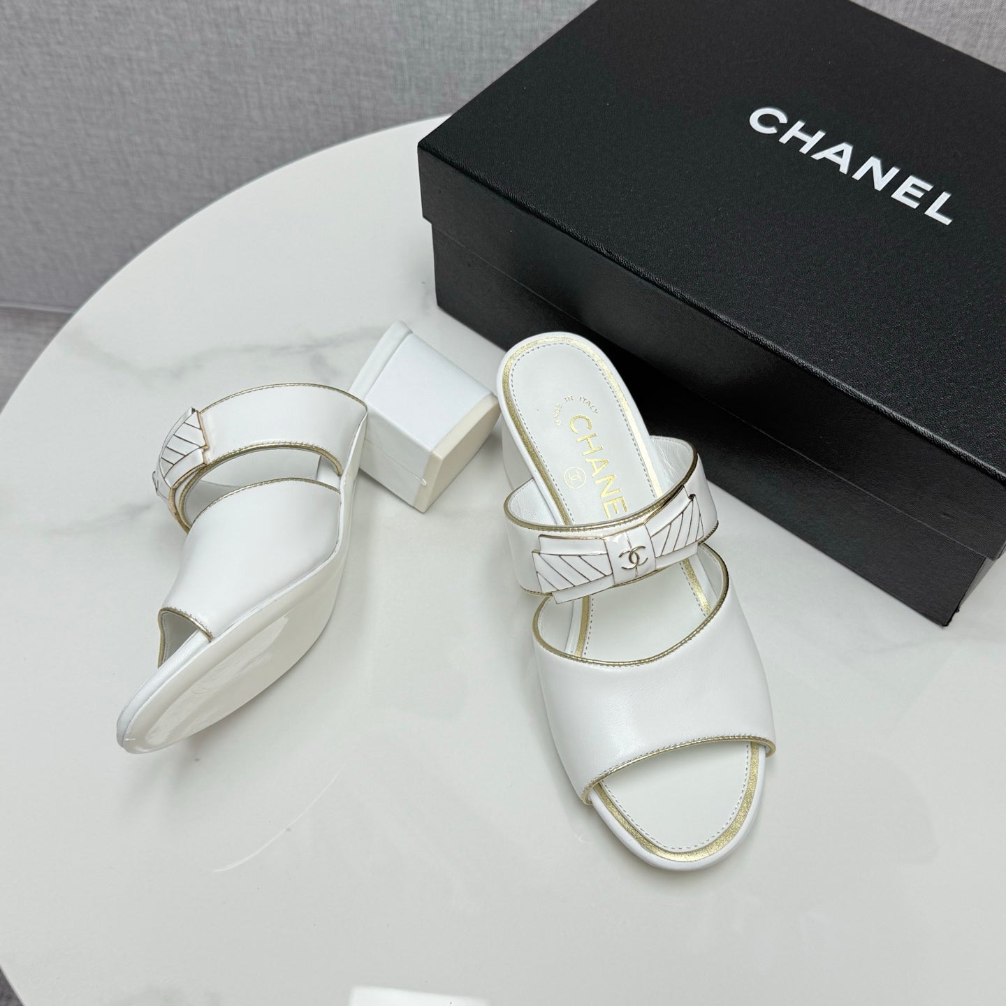 CC DOUBLE-STRAP HEELS 25S IN WHITE CALFSKIN