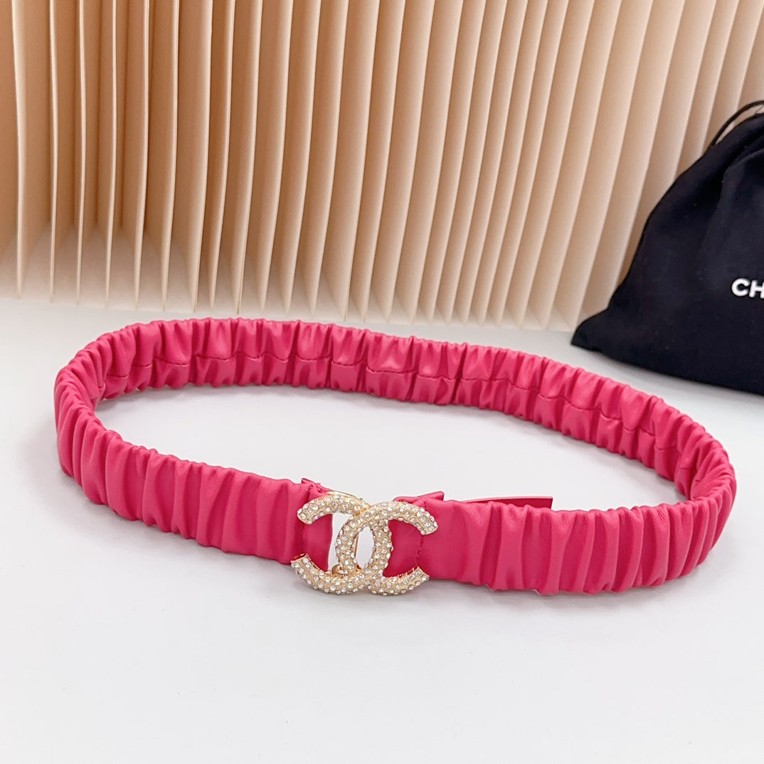 CC ELASTIC 30 MM BELT IN RED PINK CALFSKIN WITH GOLD LOGO ATTACH RHINSTONES