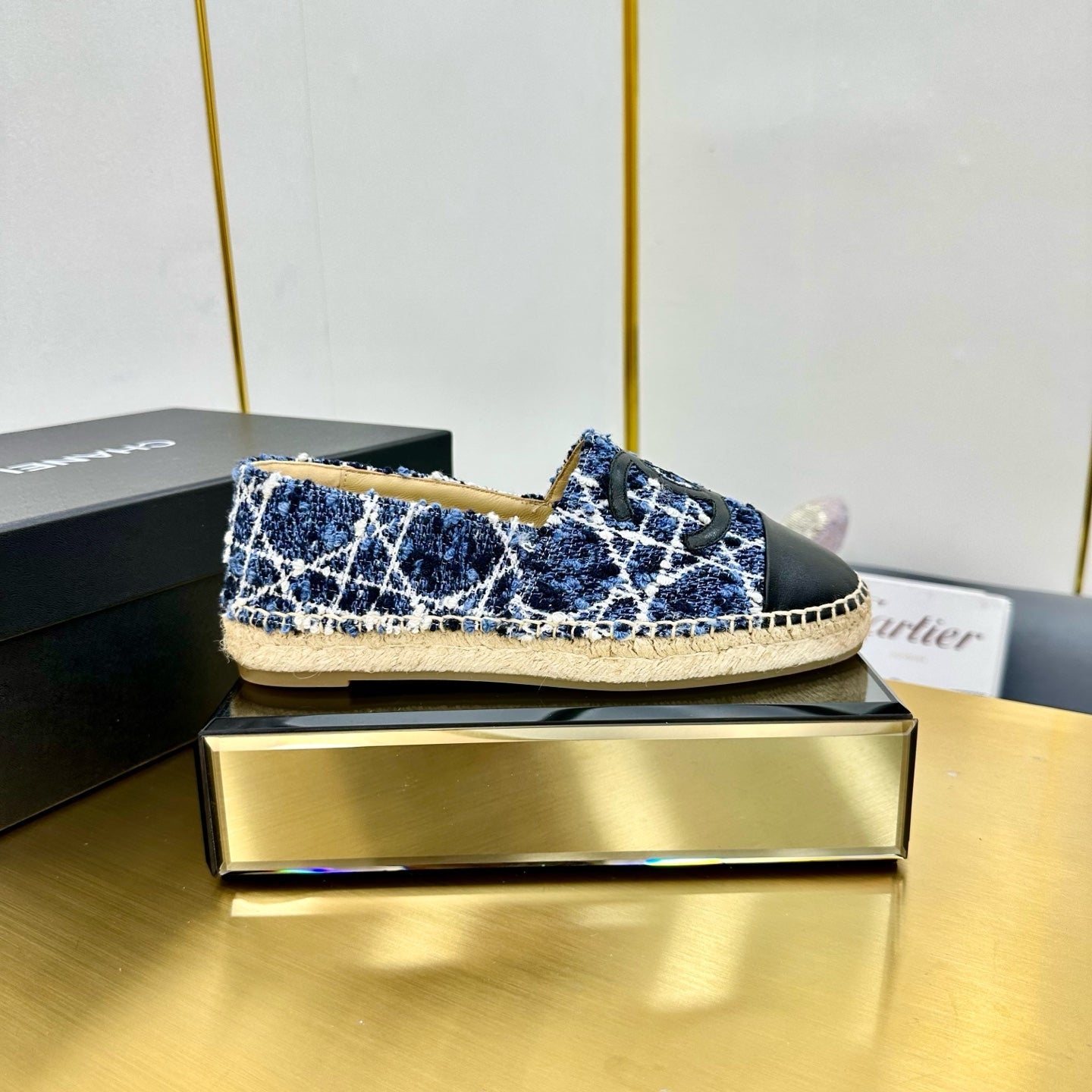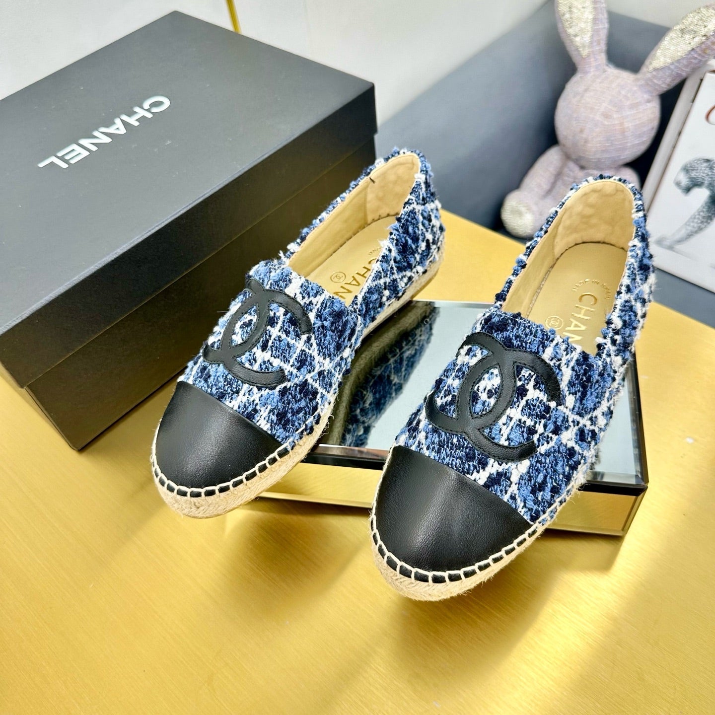 CC ESPADRILLES PLATFORM 25S IN BLUE TWEED MIX BLACK CALFSKIN