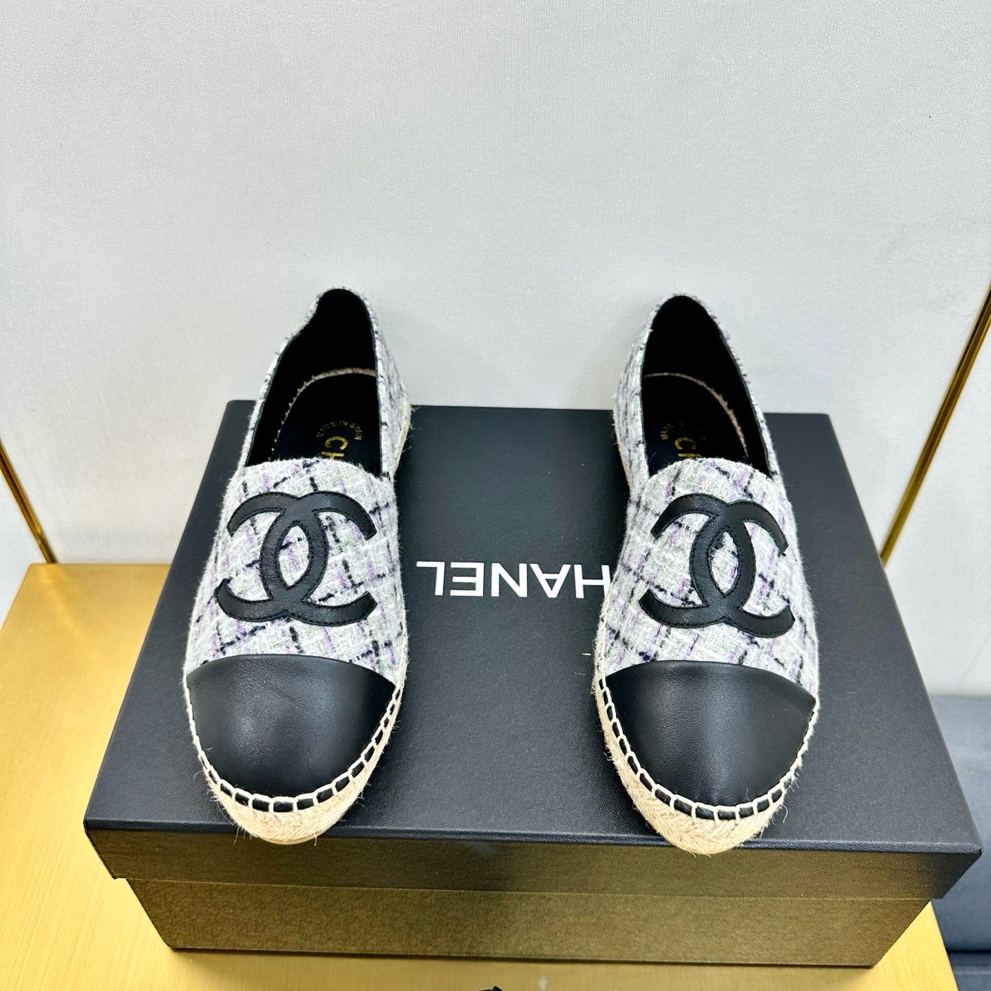 CC ESPADRILLES PLATFORM 25S MIX COLOR TWEED AND BLACK CALFSKIN