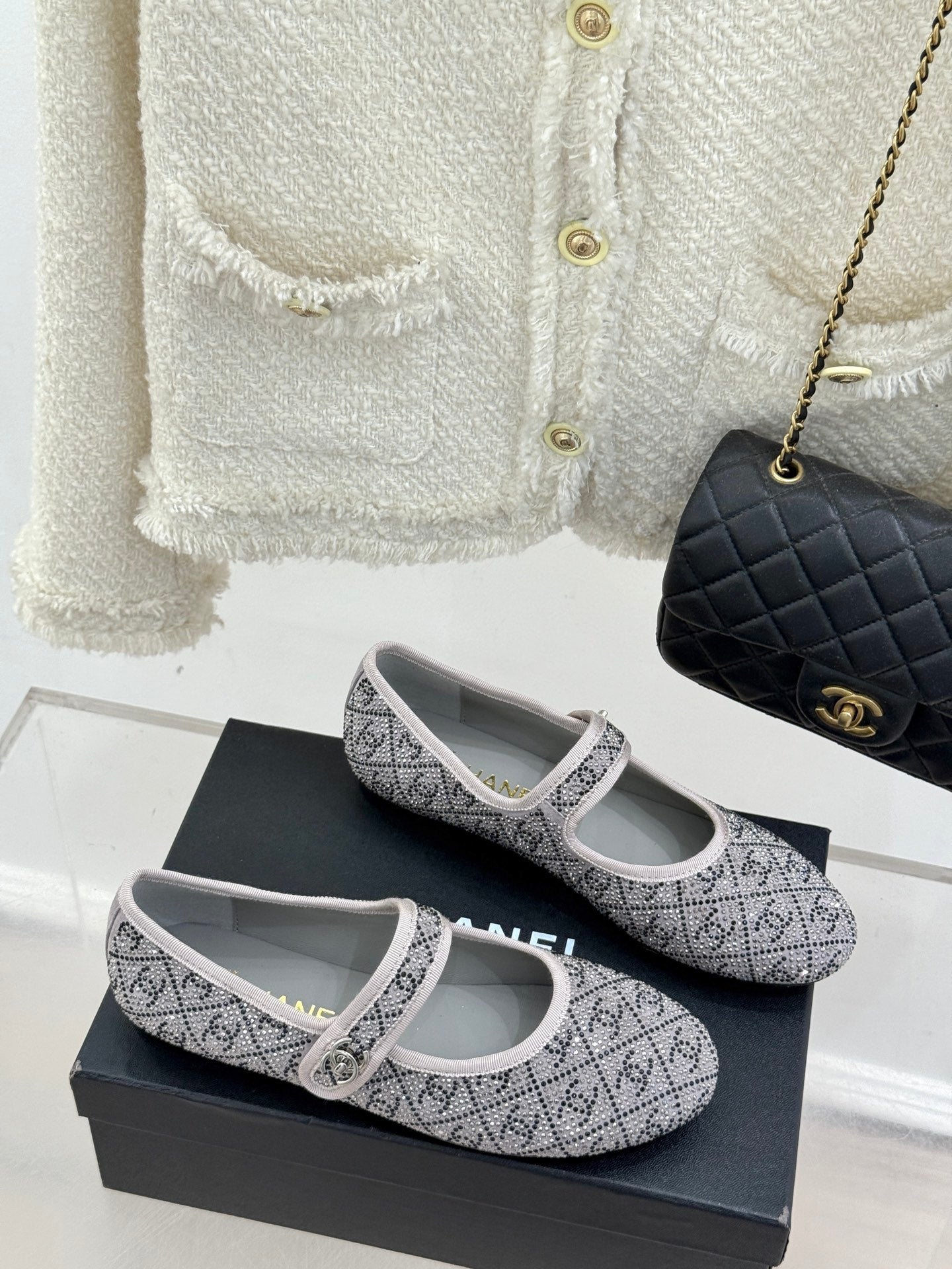 CC FLAT MARY JANE 25SS IN GREY EMBELLISHED WITH RHINESTONES