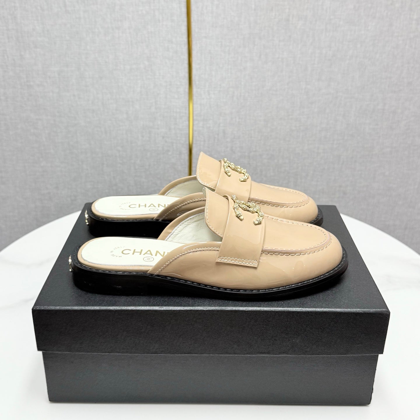 CC FLAT MULE 25S IN LIGHT BEIGE CALFSKIN STYLE 9
