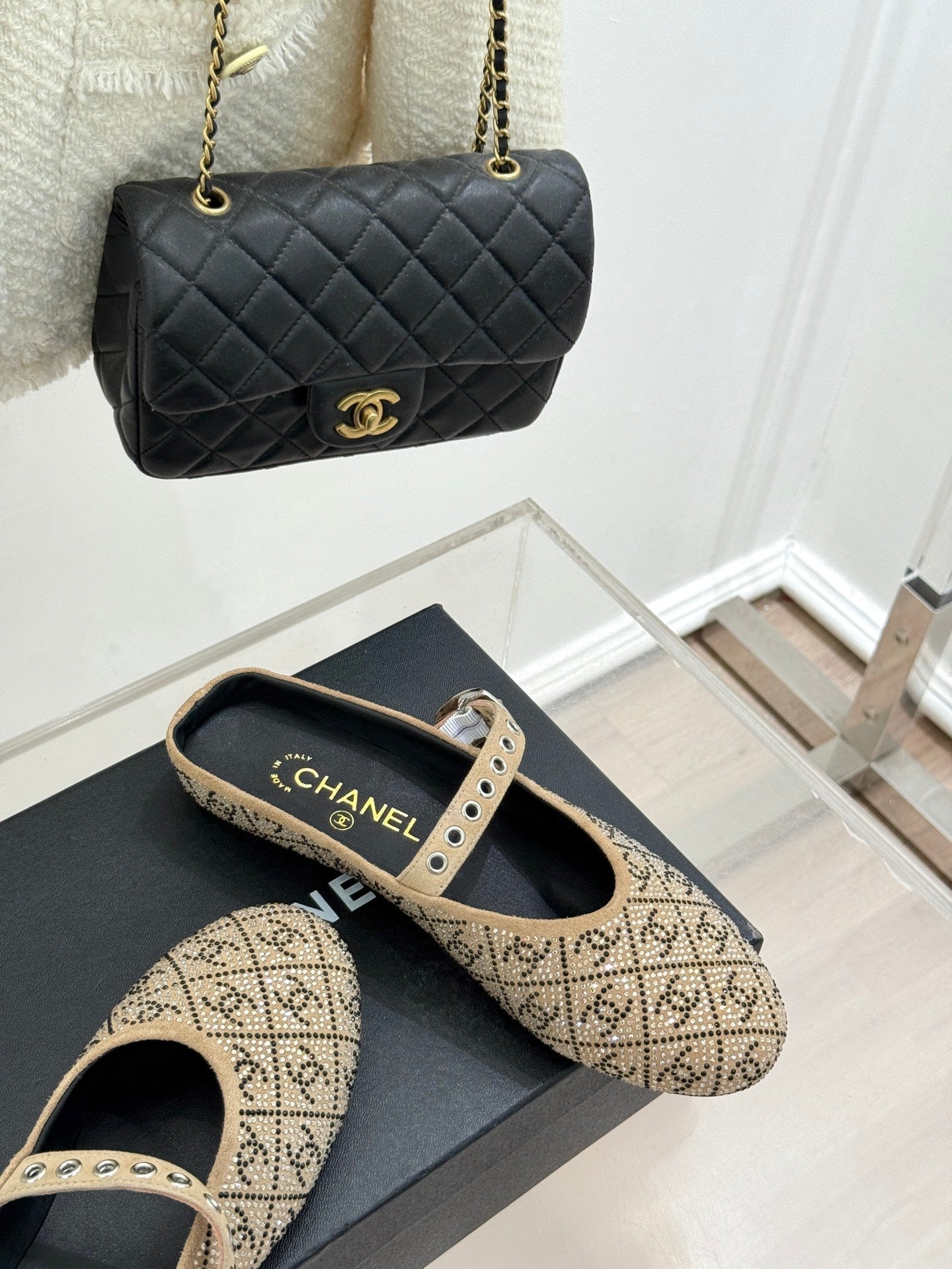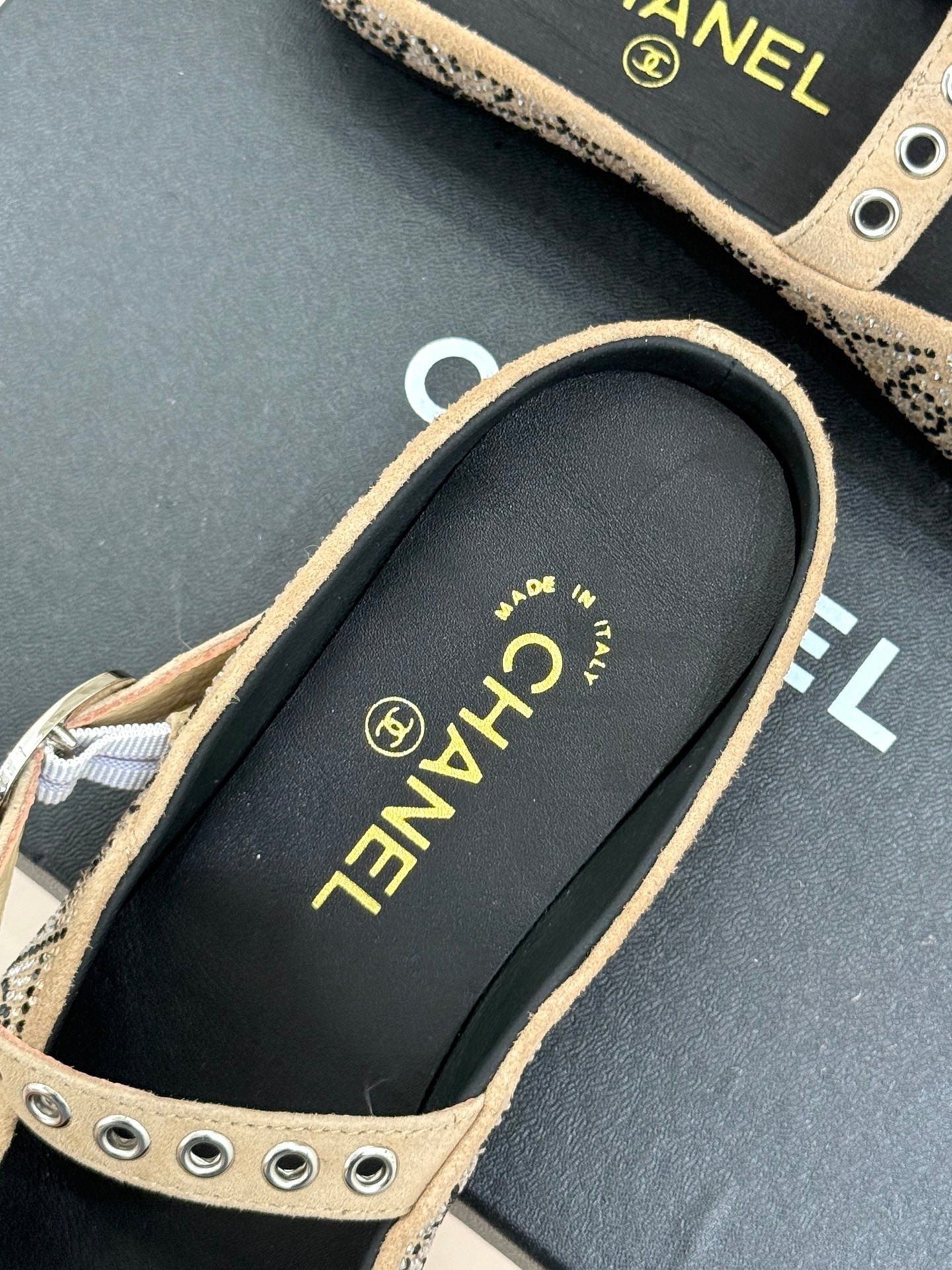 CC FLAT MULES 25SS IN BEIGE EMBELLISHED WITH RHINESTONES