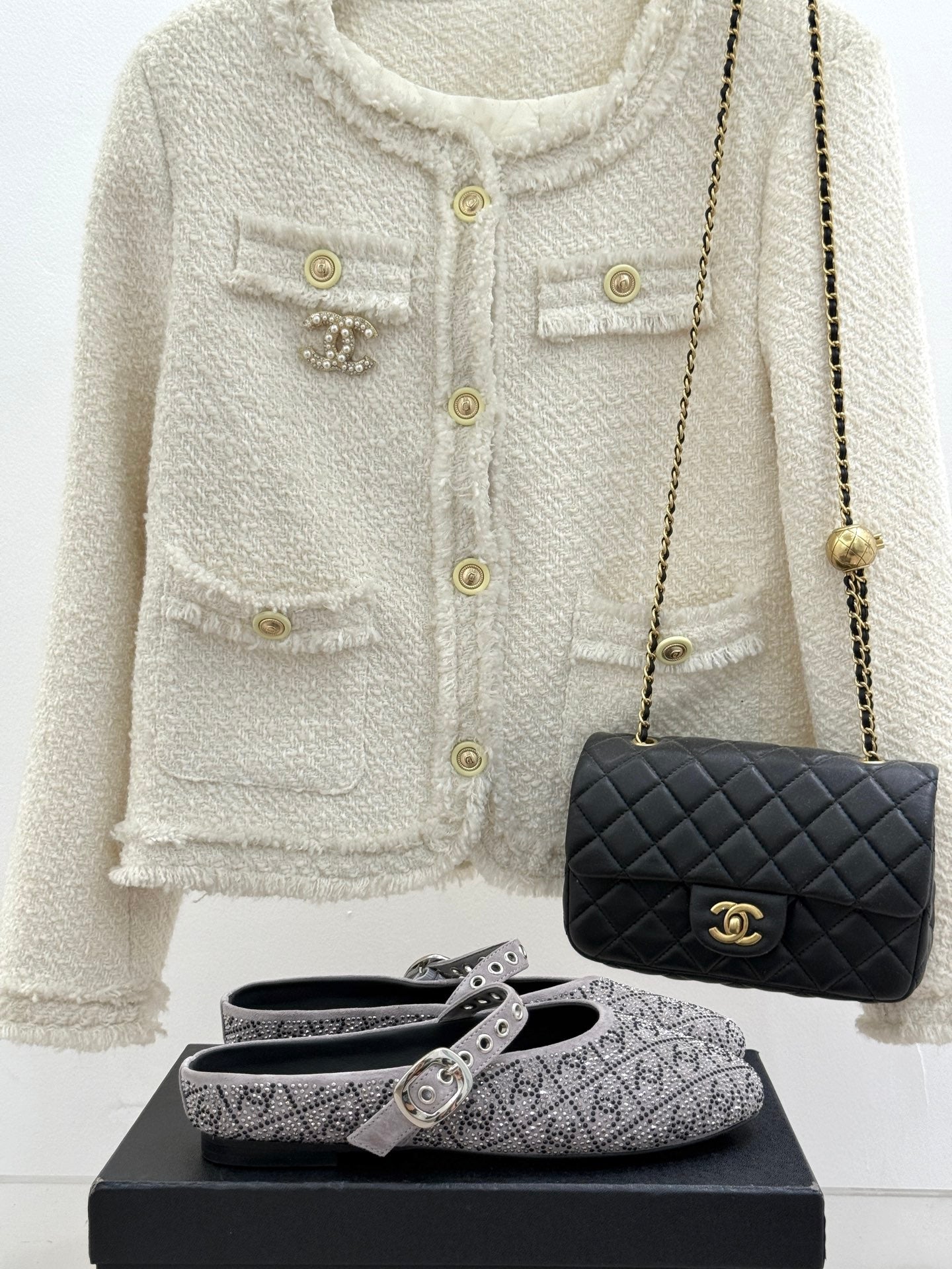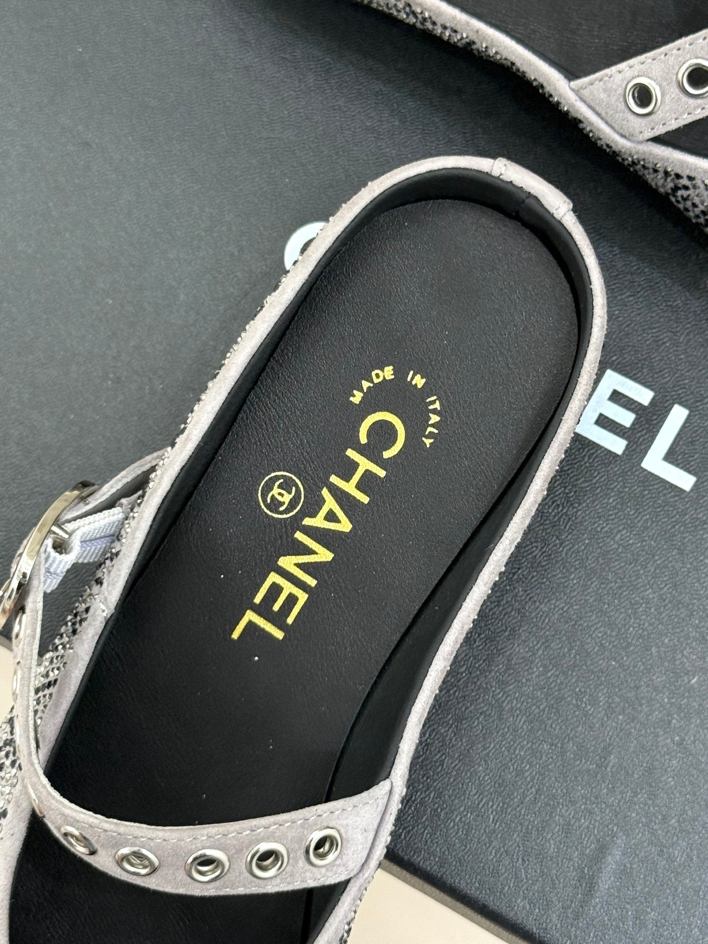 CC FLAT MULES 25SS IN GREY EMBELLISHED WITH RHINESTONES