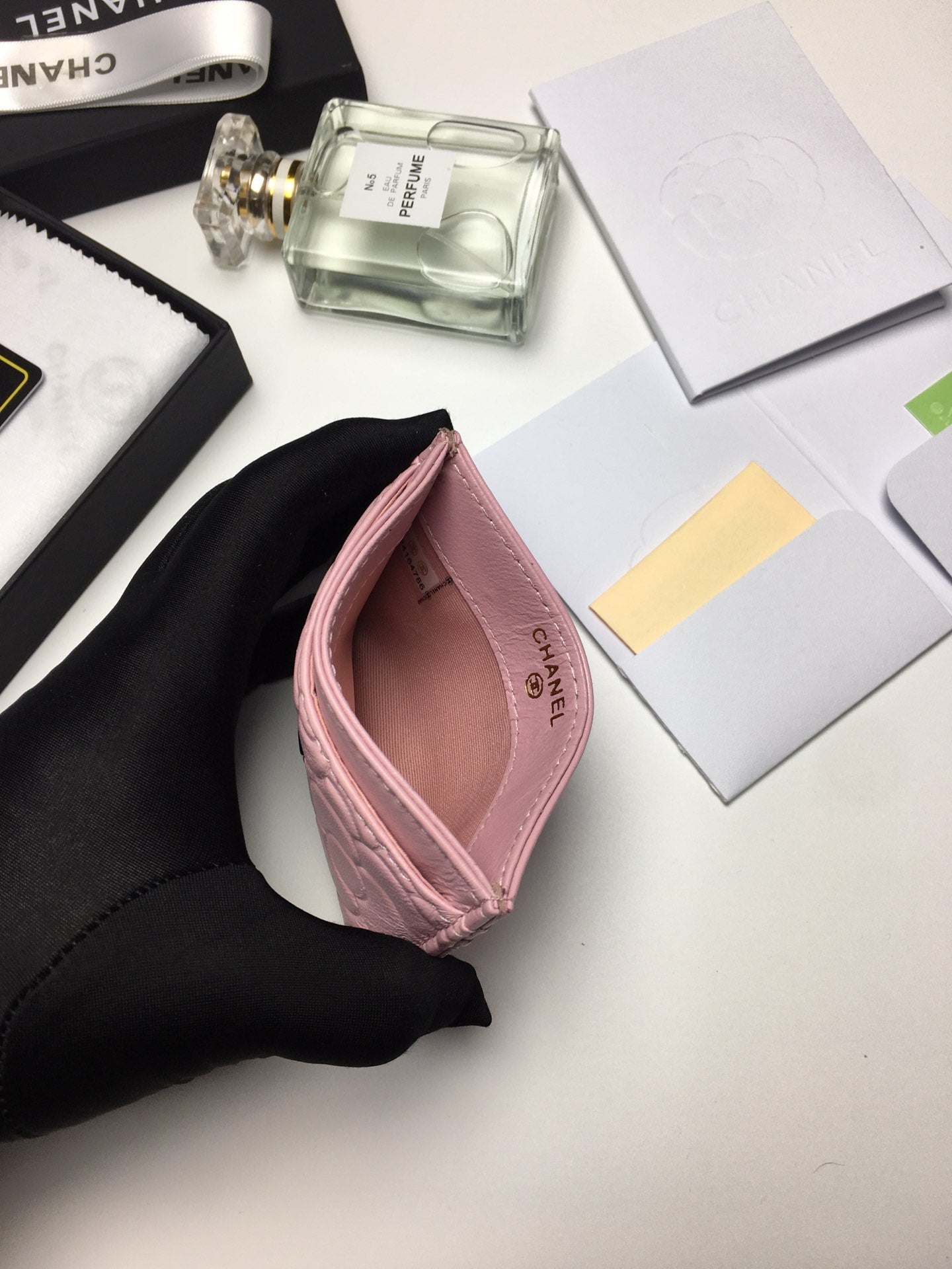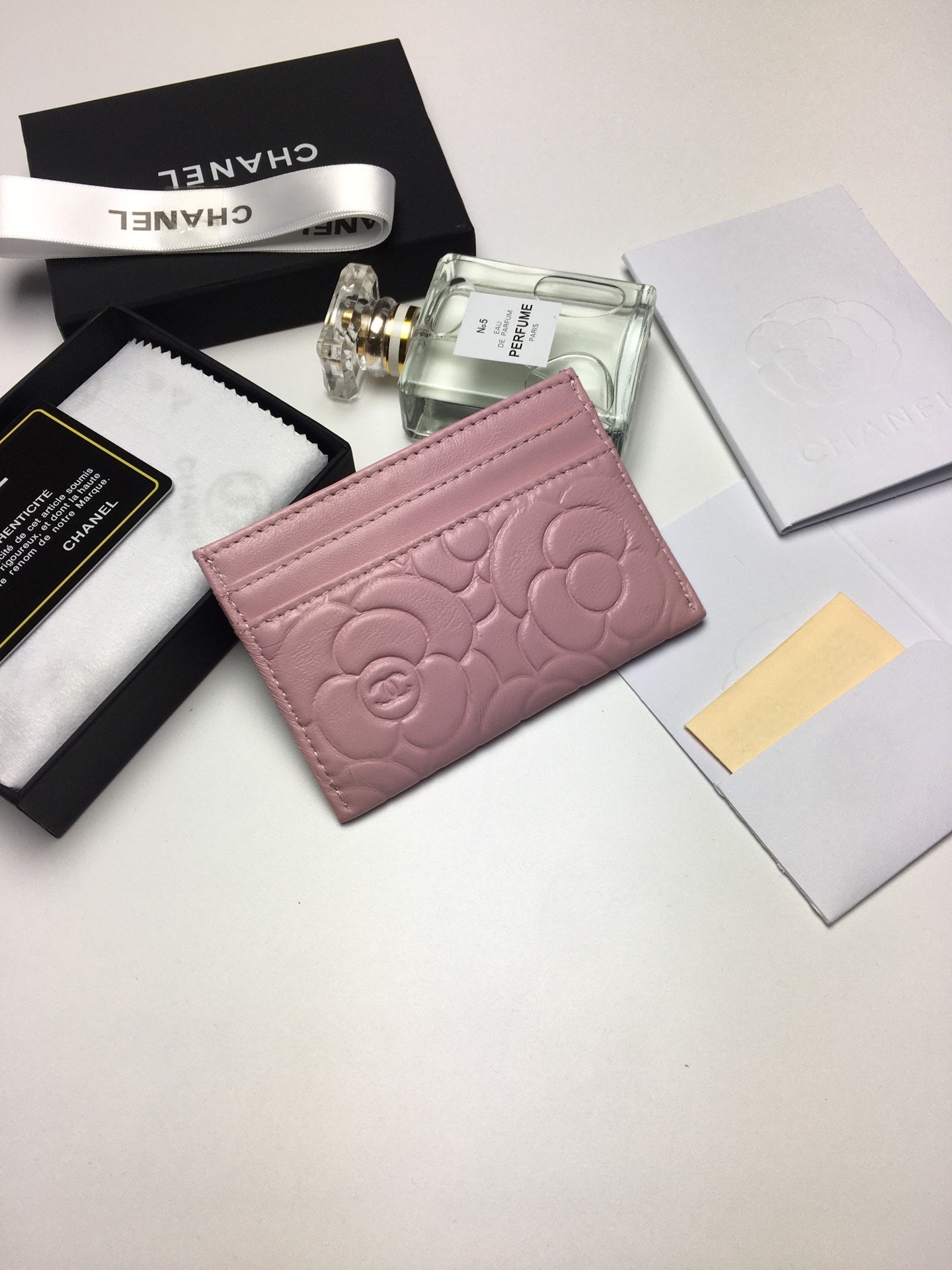 CC FLORAL CARD HOLDER 11.2 BABY PINK CALFSKIN SILVER ICON