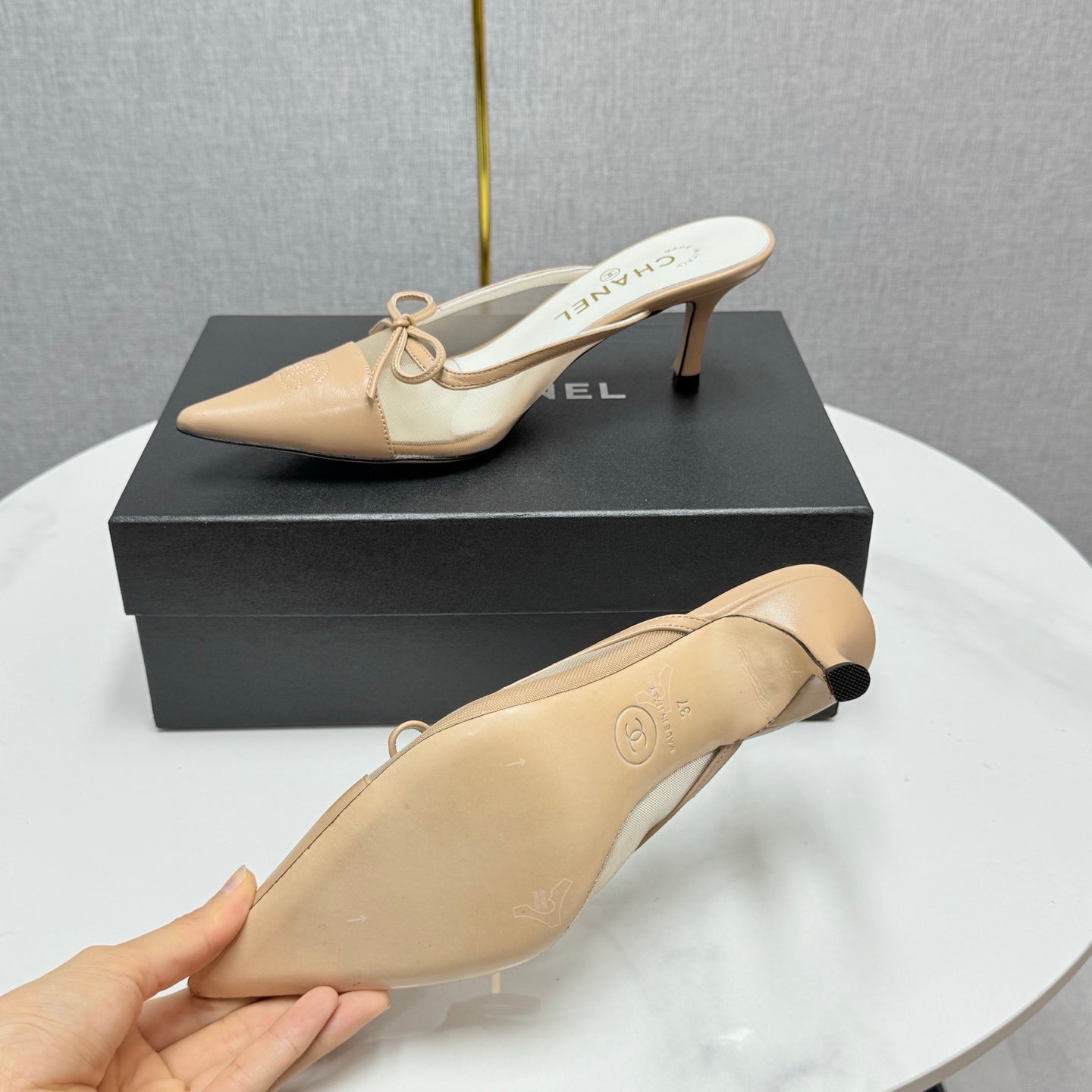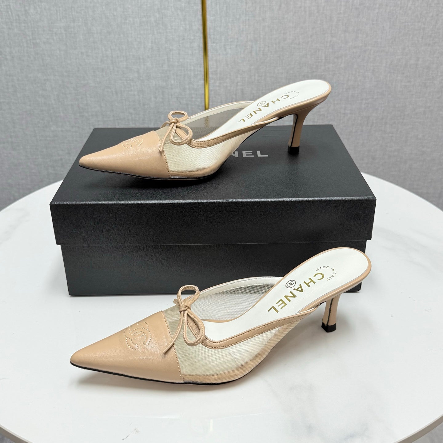 CC HEEL MULES 25S IN BEIGE MESH FABRIC AND LAMBSKIN WITH BOW