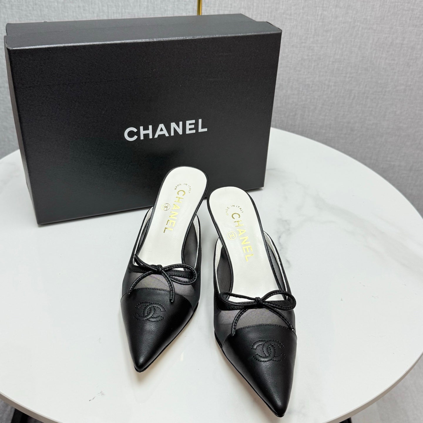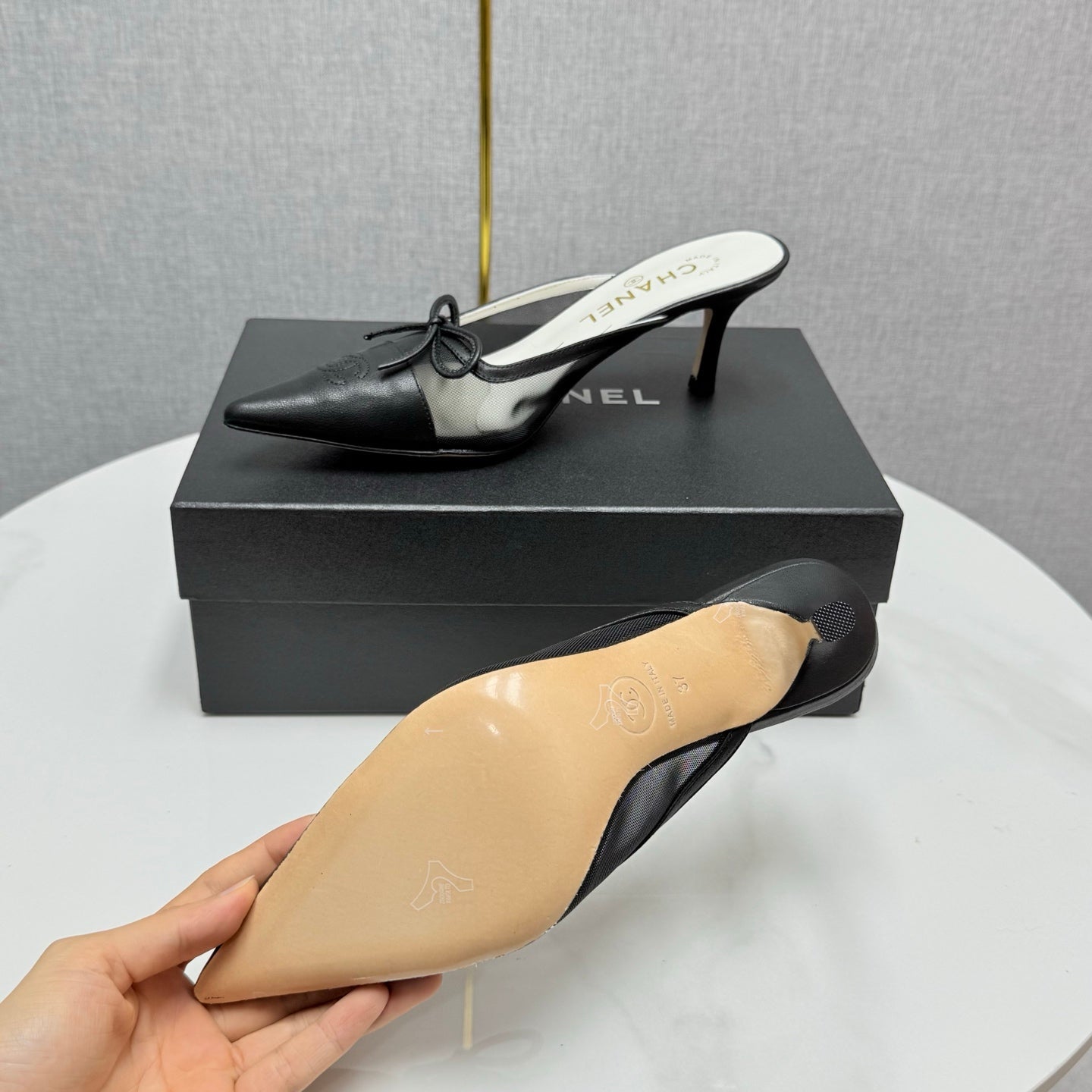 CC HEEL MULES 25S IN BLACK MESH FABRIC AND LAMBSKIN WITH BOW