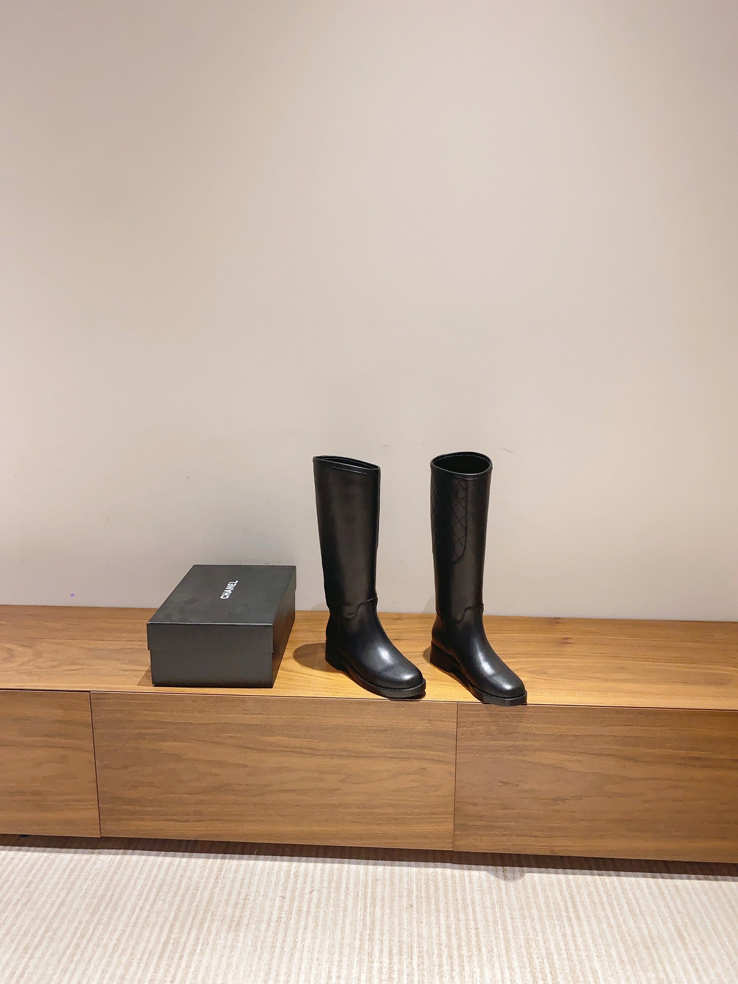 CC HIGH BOOTS IN BLACK QUILTED CALFSKIN