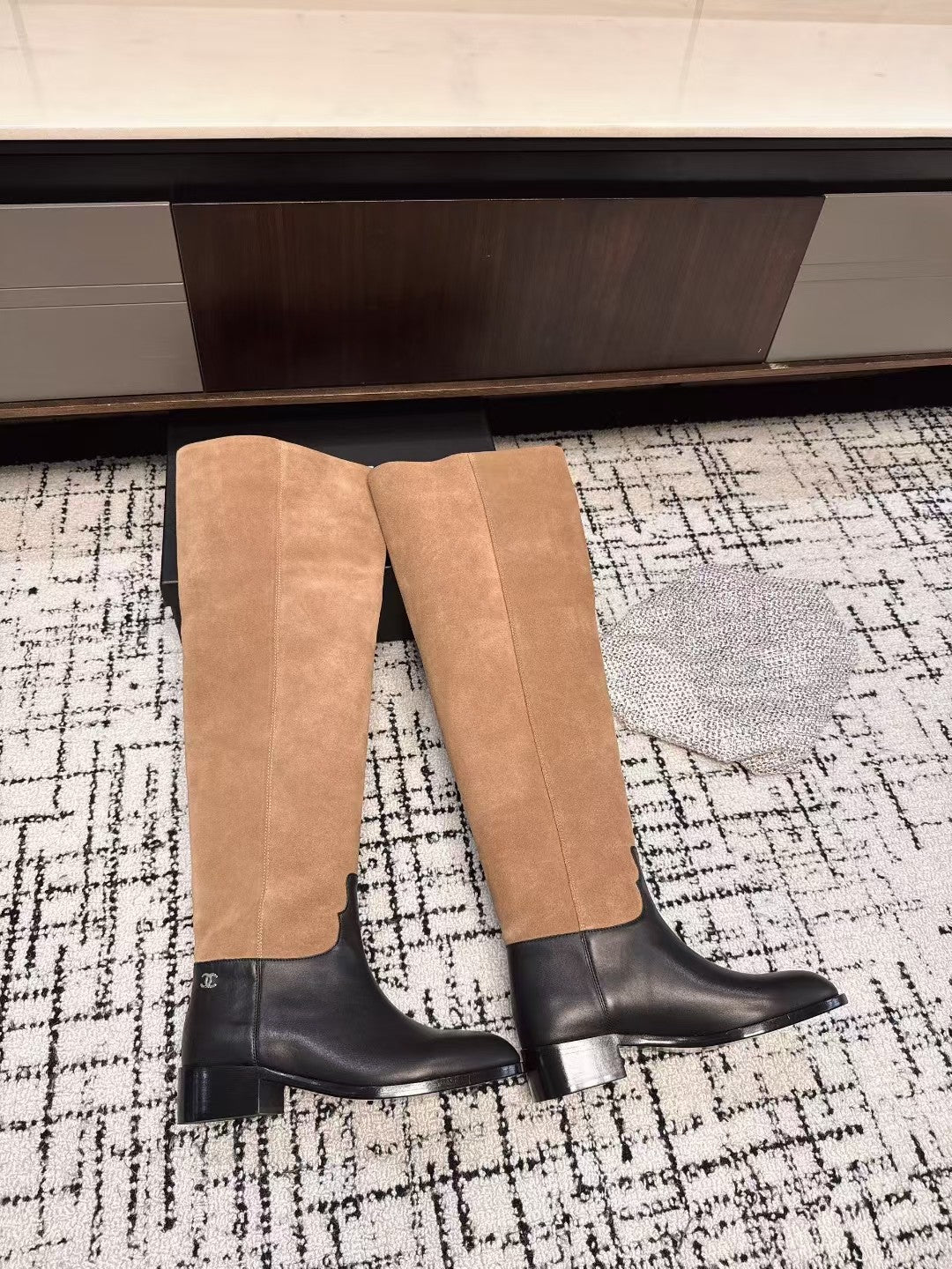 CC HIGH BOOTS IN TAN BROWN SUEDE MIX BLACK CALFSKIN