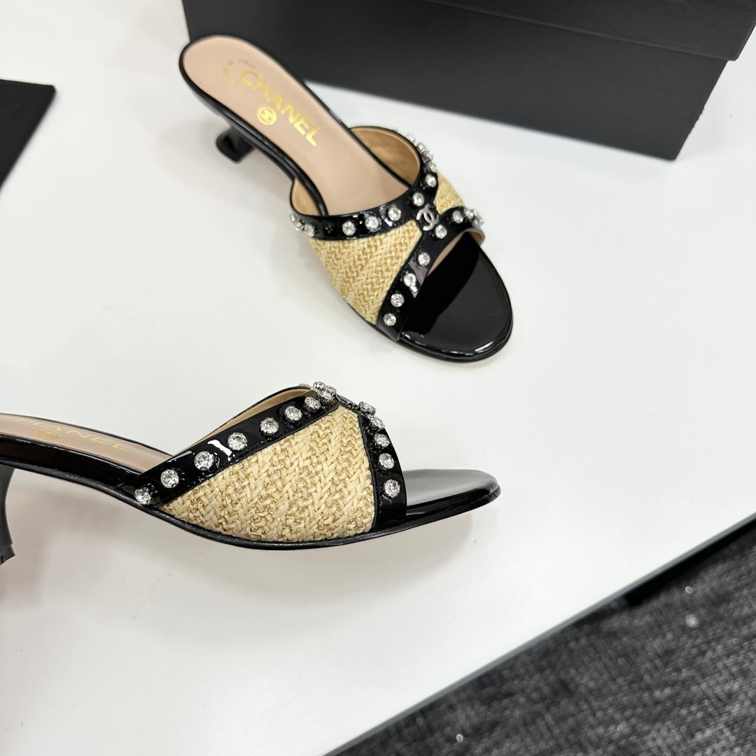 CC HIGH HEEL 25S 50 MM IN BEIGE RAFFIA AND BLACK CALFSKIN WITH CRYSTALS