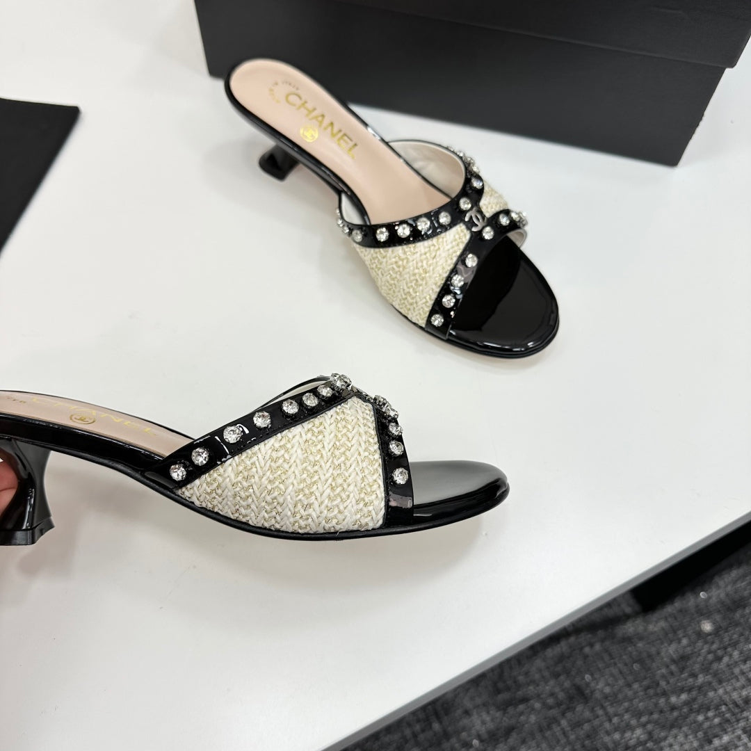 CC HIGH HEEL 25S 50 MM IN WHITE AND LIGHT BEIGE RAFFIA WITH CRYSTALS
