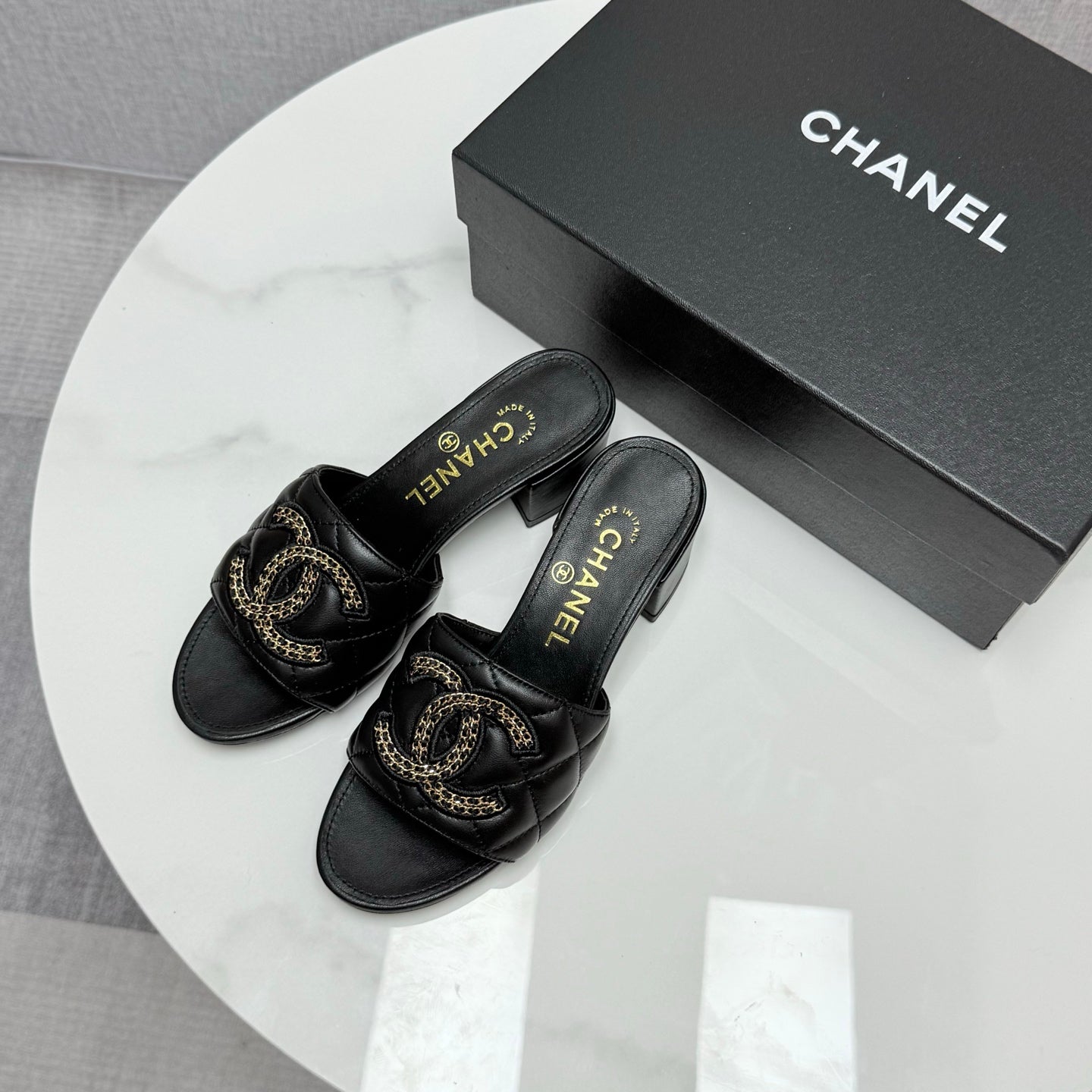 CC HIGH HEEL 25S IN BLACK CALFSKIN WITH LOGO