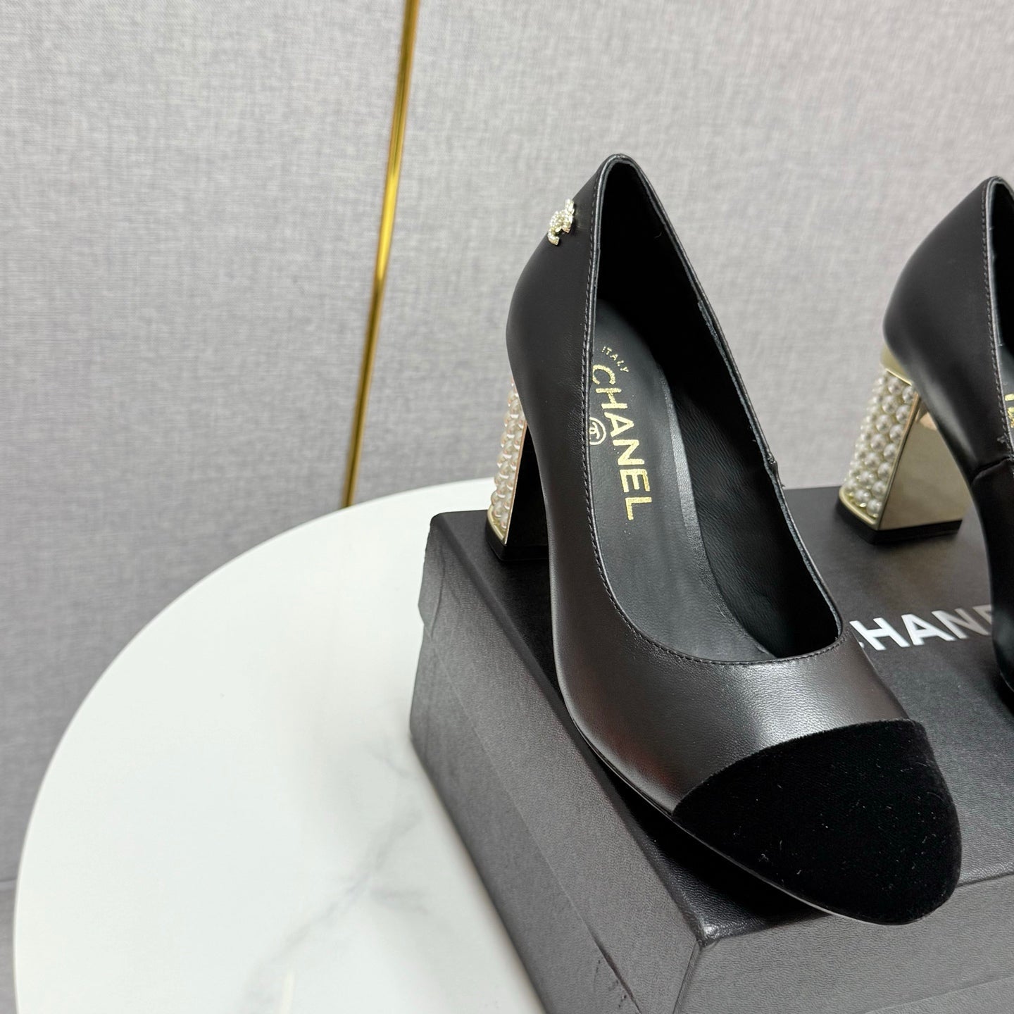 CC HIGH HEEL 25S IN BLACK LAMBSKIN AND SUEDE WITH PEARL HEEL STYLE 3