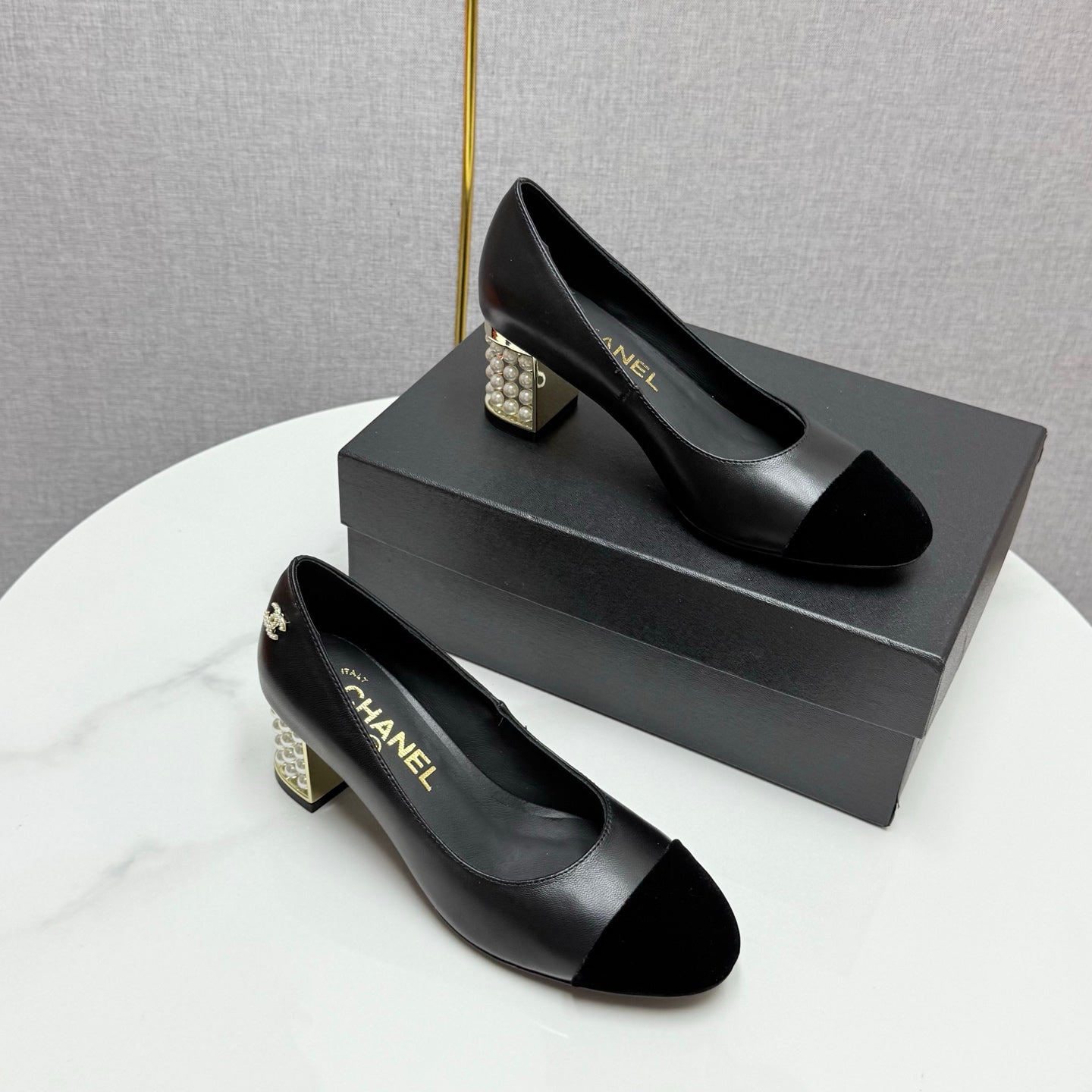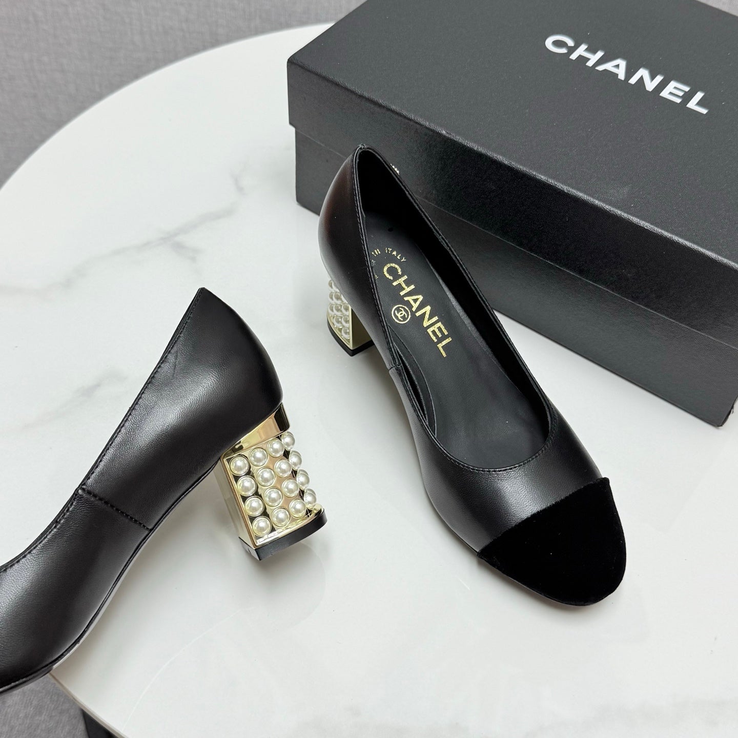 CC HIGH HEEL 25S IN BLACK LAMBSKIN AND SUEDE WITH PEARL HEEL STYLE 5