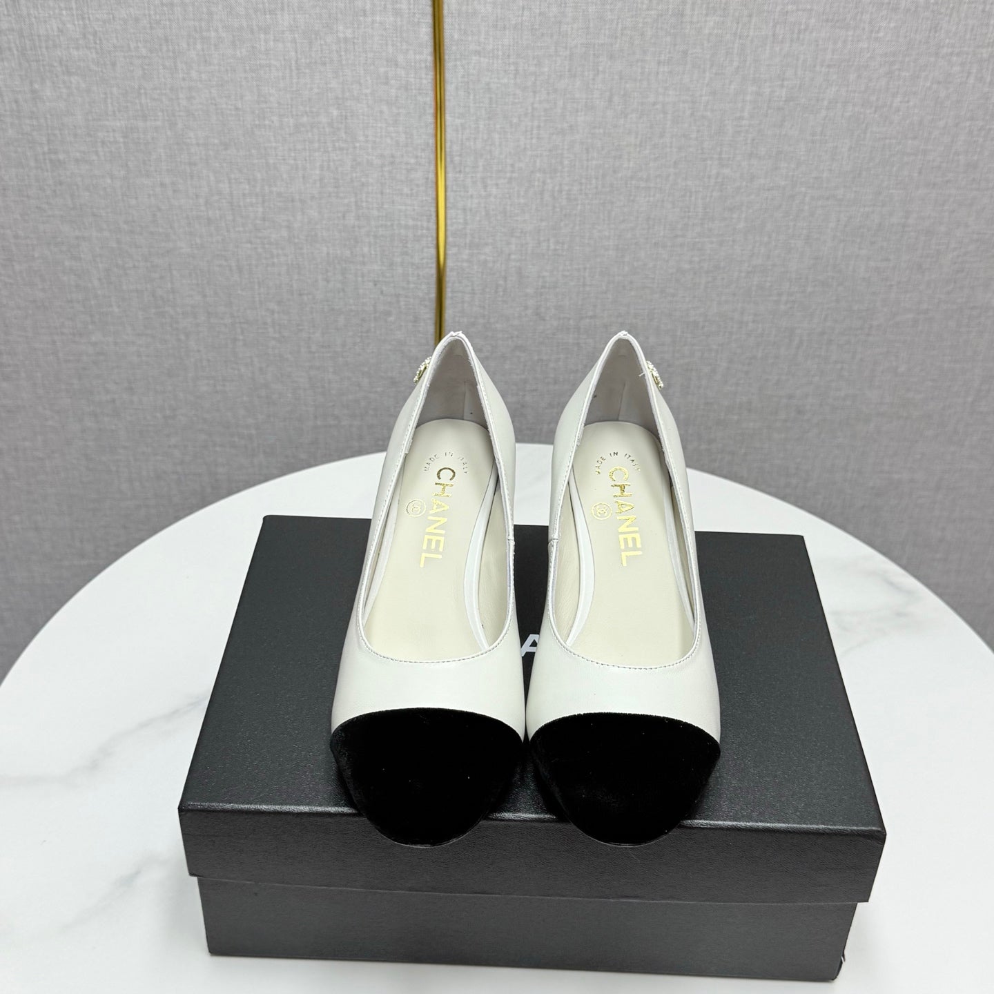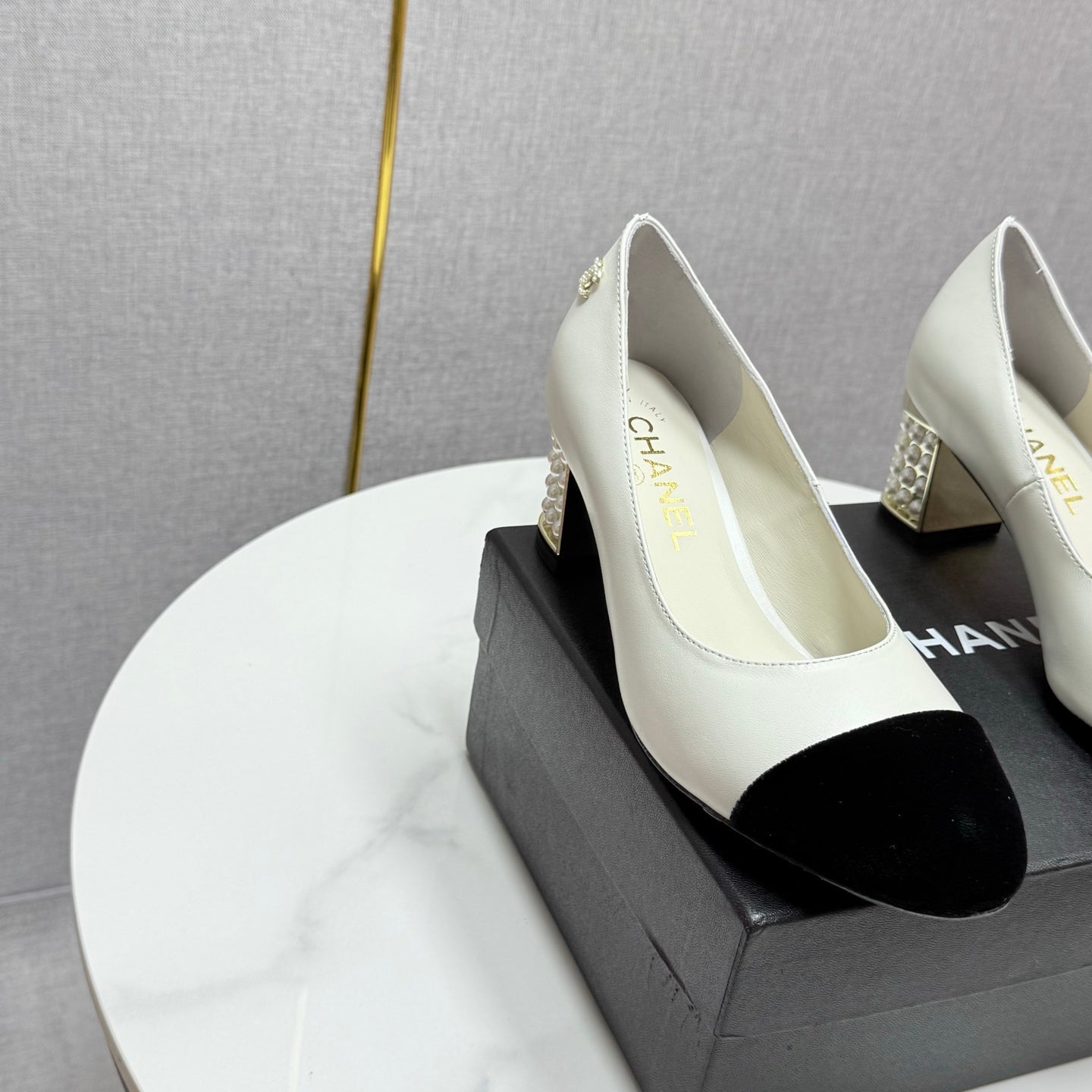 CC HIGH HEEL 25S IN BLACK LAMBSKIN AND SUEDE WITH PEARL HEEL STYLE 6